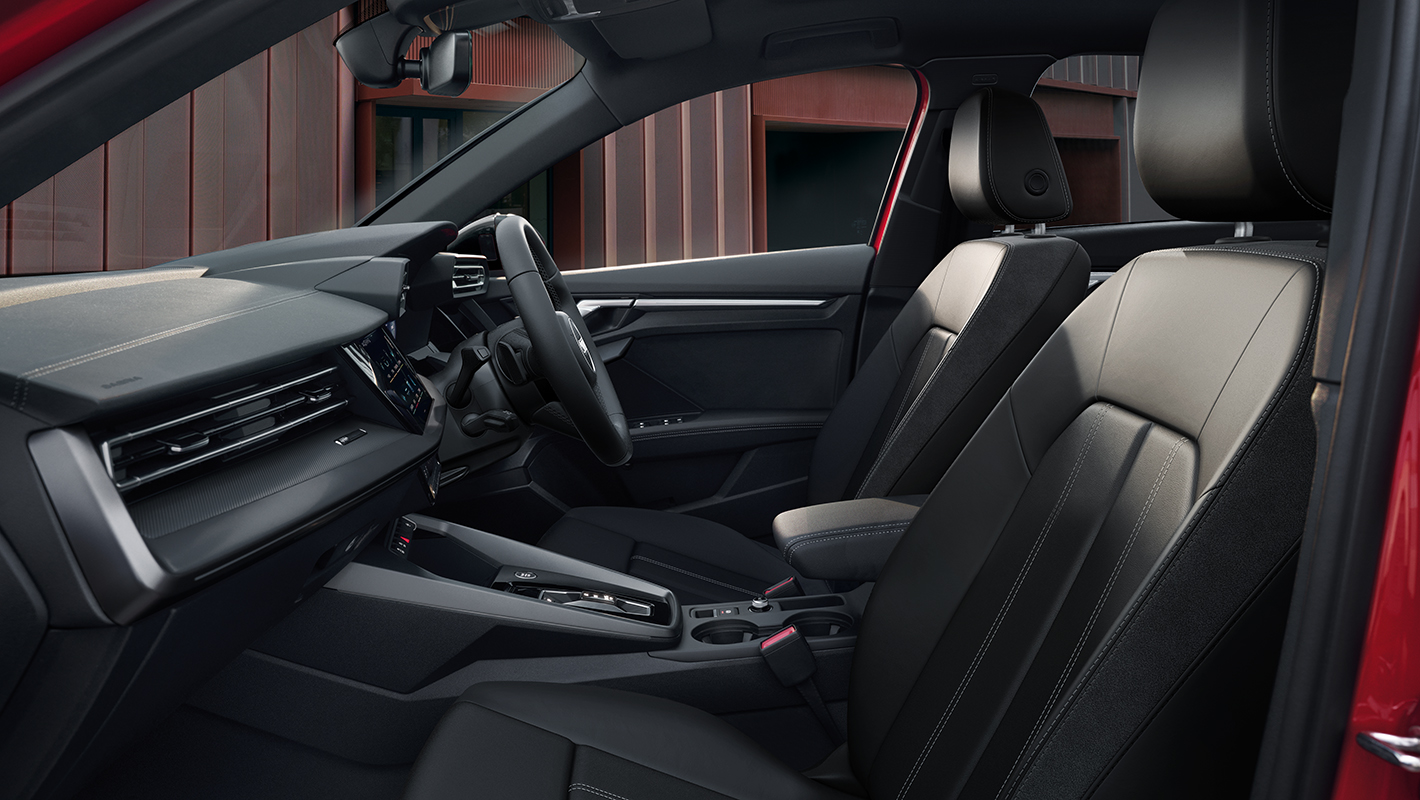 ボディサイズにとらわれない快適性とラゲッジスペースを備えるAudi A3のインテリア。質感高く設えられた空間は、プレミアムな印象を醸成しながら見事に先進テクノロジーと融合します。シフトスイッチは新たなデザインへと刷新。よりフラットな形状になりセンターコンソールにシームレスに溶け込むことで、空間との調和を増しながら操作性の向上も果たしました。