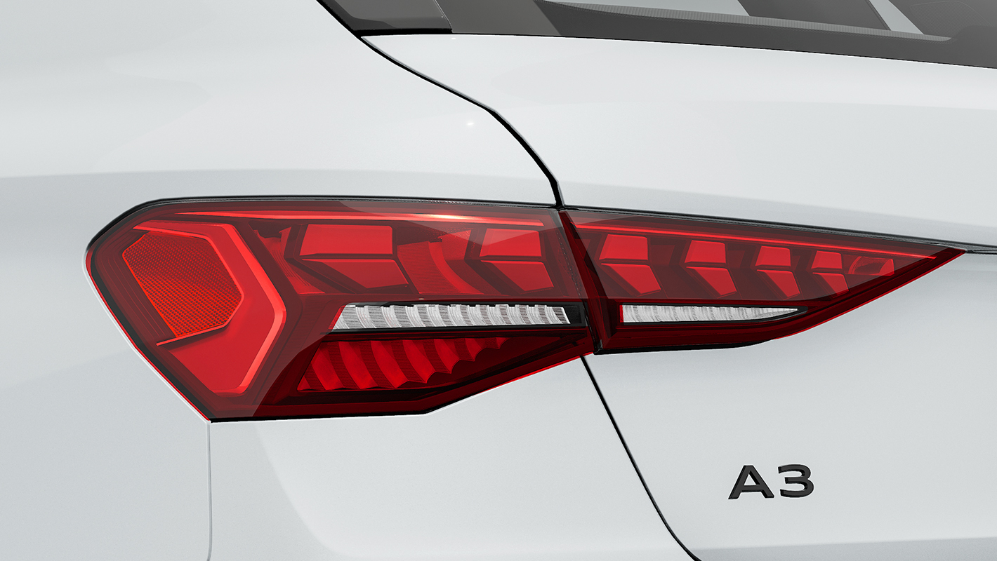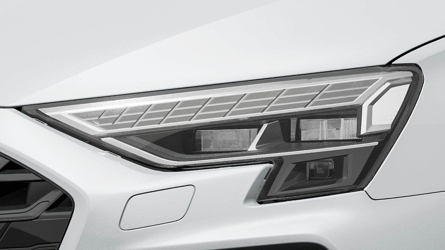 太陽光に近い光源で路面を照射するフラットで先進的なデザインのLEDヘッドライト。視界不良時の反射グレアを低減するオールウェザーライト、高速走行時に照射範囲を拡張するモーターウェイライト、カーブでの照射範囲を補助するスタティックコーナリングライト等の機能を装備。MMIタッチディスプレイで3つの点灯パターンを切り替えられるデジタルデイタイムランニングライトと、印象的な光の流れを生みだすダイナミックターンインディケーターも搭載しています。