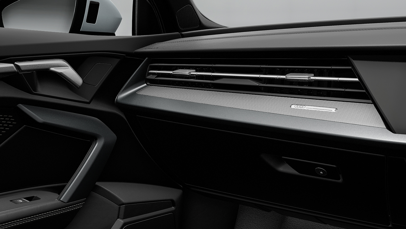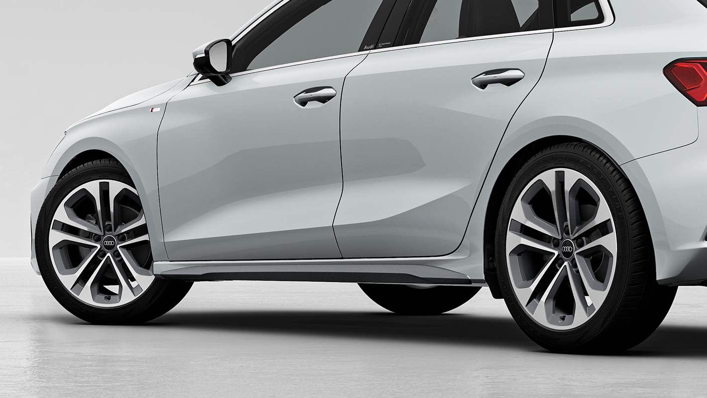 Audi A3が放つ魅力をさらに精悍に磨き上げたS lineでは、新たに採用された低く幅広いシングルフレームグリルに加え、ブラックトリムが組み合わされたブレードと一体化した幅広いエアインテークや、ダークカラーで仕上げたワイド&ローを強調するリヤディフューザー、Sルーフスポイラー*、18インチアルミホイールなど、ダイナミックなエクステリアが心躍る走りを予感させます。