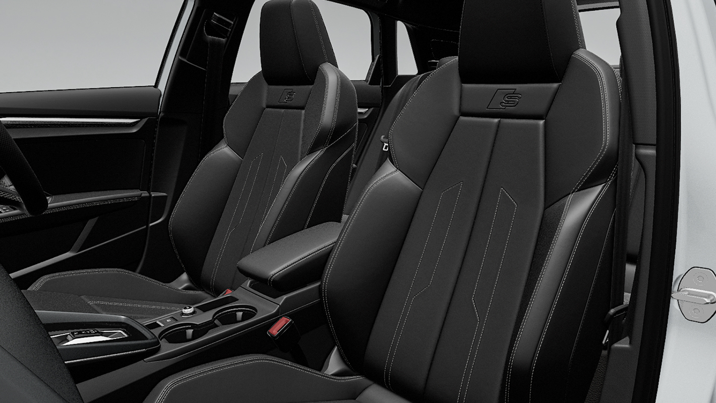 スポーツシート (フロント) - レザー/アーティフィシャルレザー S lineロゴ - ブラック (ロックグレーステッチ)