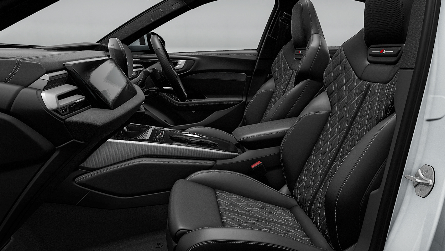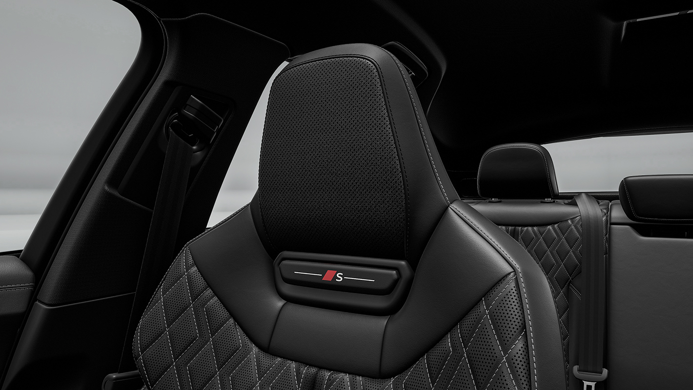 一体型ヘッドレストを備えたホールド性の高いスポーツシート。シートサイドボルスターはコーナリングの際、身体をしっかりサポートする形状に。パーフォレイテッド加工が施され、シートベンチレーション機能を搭載。マッサージ機能も備えています。バックレストのSロゴ、上質で温かみのあるファインナッパレザー、コントラストのある印象的なダイヤモンドステッチが、スポーティでエレガントな雰囲気を際立たせます。