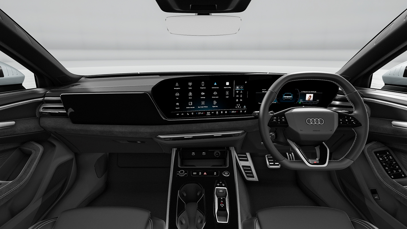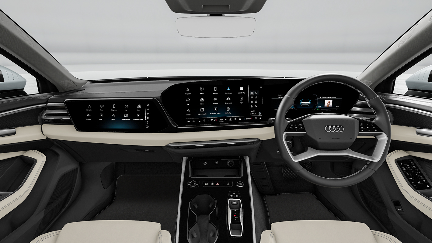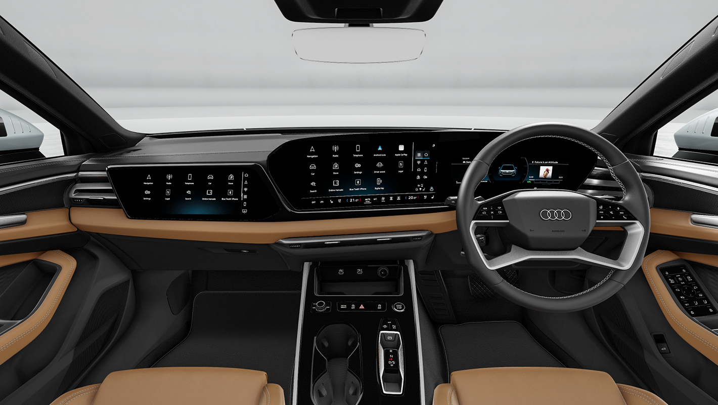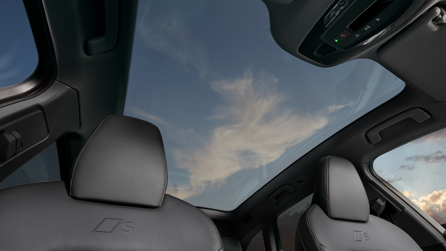天井全体に広がるスマートパノラマガラスルーフは、透明度を変更できるPDLC技術 (ポリマー分散型液晶)を採用。Audi A5は6セグメント、Audi A5 Avantは9セグメントに分けて遮光モードの切り替えができます。熱線を低減する構造により、快適性を保ちながら車内の隅々に自然光を豊かに採り込めます。エンジンを停止すると自動で不透明に切り替わり、再びエンジンを始動すると最後に選択した設定になります。