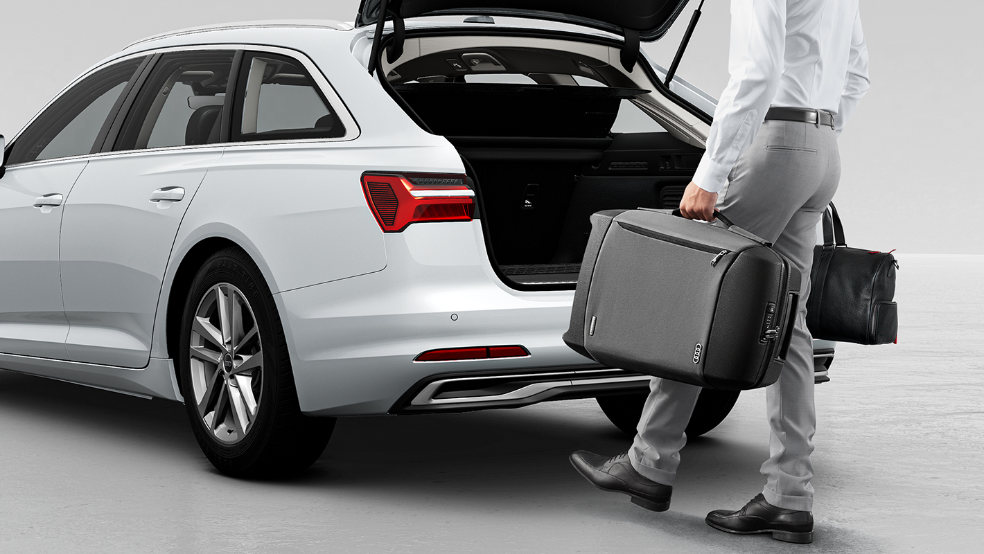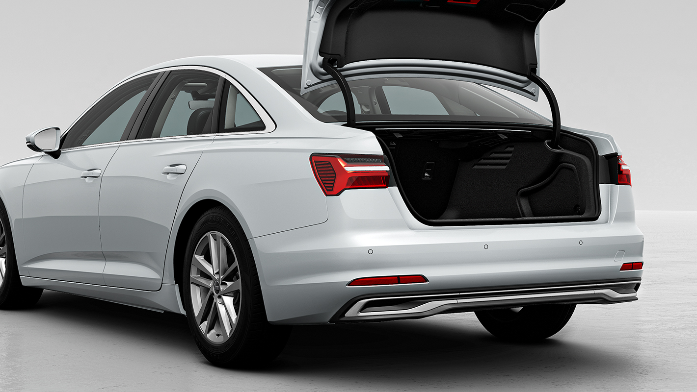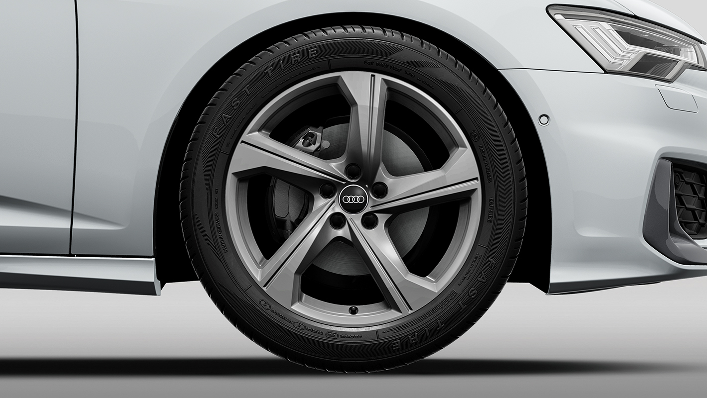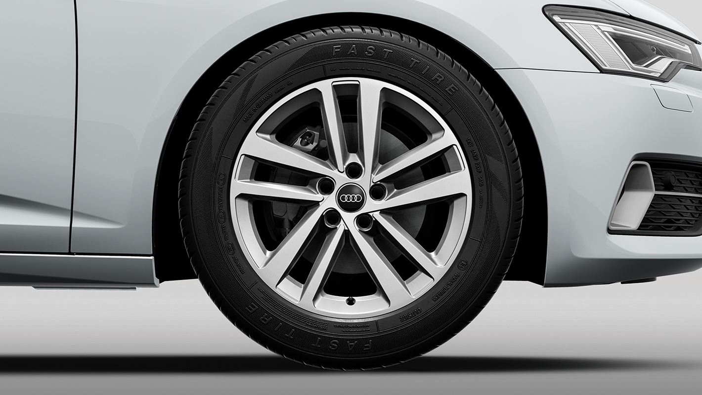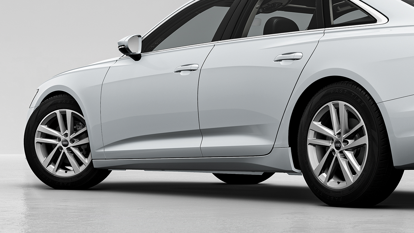 Audi独自の個性を明快に主張するAudi A6のフロントマスク。advanced にはダーククローム仕上げのシングルフレームグリルを採用。リヤディフューザーはセレナイトシルバーのブレードを備えたダイナミックなデザインで堂々たる風格が漂います。さらに5ダブルアームデザインの18インチアルミホイールが精悍さを演出します。