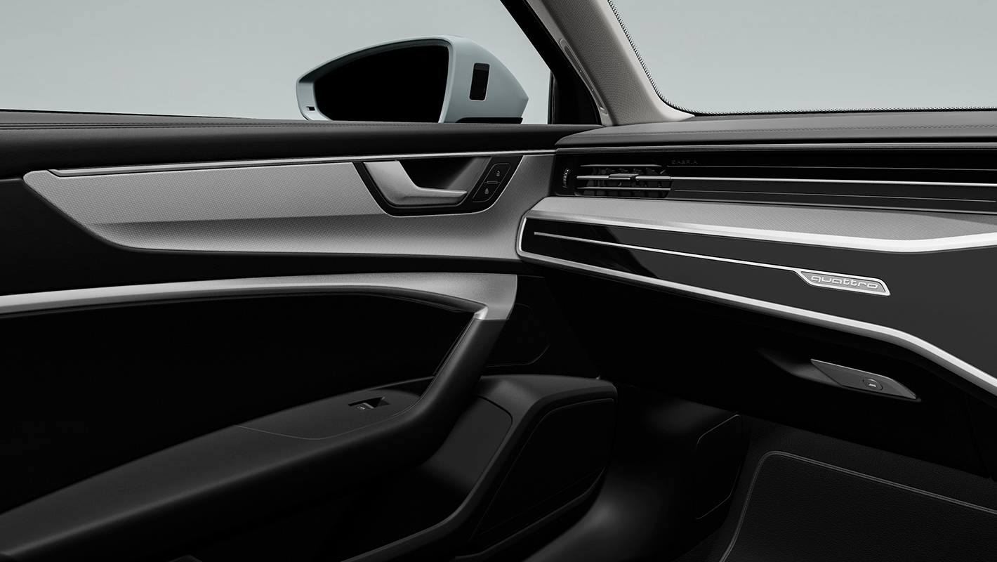 スポーティなスタイルで走りの愉しみを拡げるS lineには、上質なバルコナレザーで仕立てられたS lineロゴ入りのスポーツシート、マットブラッシュトアルミニウムのデコラティブパネル、ブラックのヘッドライニングを標準装備。