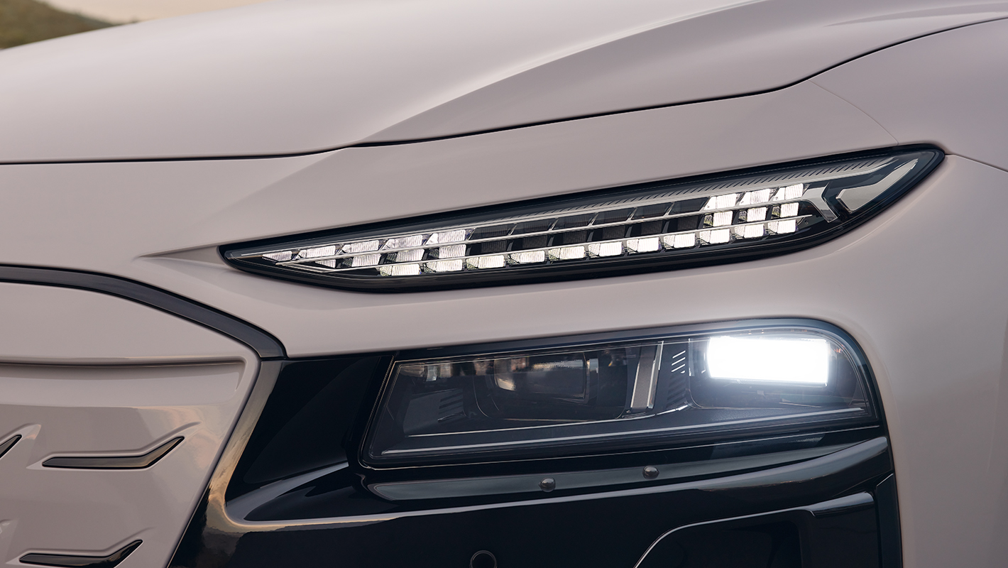 LED光源と精密な光学デバイスを組み合わせたカメラシステムによって、状況に合わせて配光を可変させ高度に制御。高速走行でハイビーム使用時にカメラが対向車や先行車を検知すると、そのエリアへのハイビームをオフにしつつ、それ以外の車間エリアや周辺は明るく照らし続けます。印象的な光の流れを生みだすダイナミックターンインディケーターも搭載。ヘッドライトと分離されたデジタルデイタイムランニングライトは、デジタルライトシグネチャーで8つの点灯パターンを選択でき、柔軟なカスタマイズ性があなたの個性を際立たせます。