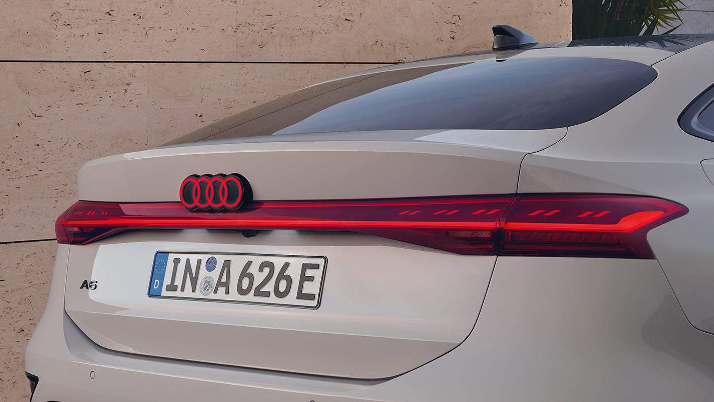 デジタルOLEDリヤライト*は、美しく躍動的なボディ造形と一体化し、リヤの表情に一層のインテリジェントな輝きをもたらします。合計450個のセグメントに分かれた10枚のOLEDパネルを備え、専用に開発したアルゴリズムにより多彩なシグネチャーを瞬時に生成。MMIタッチディスプレイで8つの点灯パターンの切り替えが可能です。事故発生時や後続車が接近しすぎた際などに注意喚起するコミュニケーションライト機能も備えています。さらに、イルミネーテッドAudi rings*は先進的な光を放ち、Audiブランドの存在を鮮烈に印象づけます。