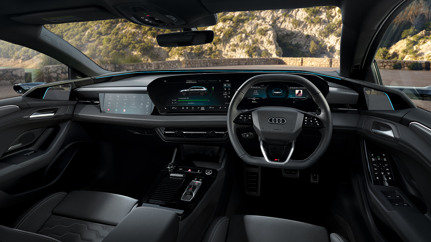 Audi A6 e-tronは広々としたゆとりの空間に先進のデジタルコックピットを融合。ラウンジを思わせる居心地の良さと高度な機能性を両立しています。人間工学に基づき緻密に設計された空間は、ドライバーを包み込むような快適性を追求しデザインされています。ダッシュボード全面に広がるMMIパノラマディスプレイは先進のデジタルステージを象徴。リヤシートは、電気自動車ならではのセンタートンネルのないフロアで足元まで広く開放的なスペースを確保しています。