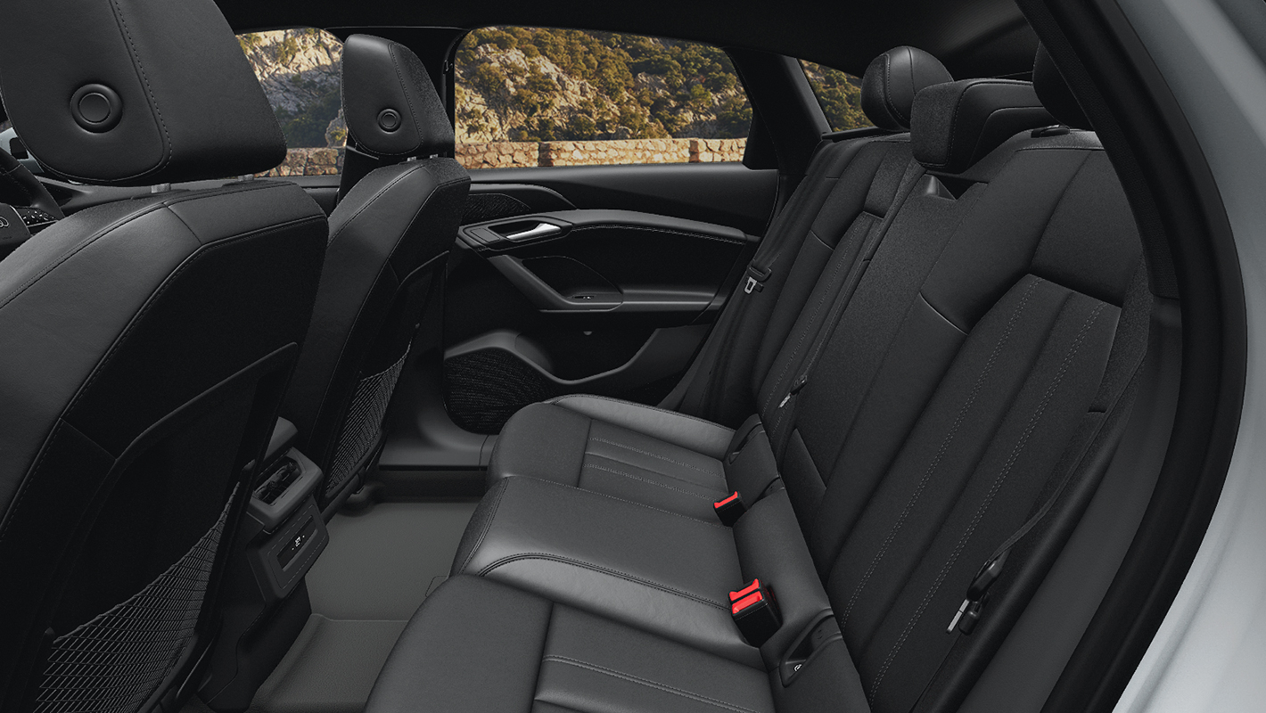 ひと目で電気自動車とわかる先進的なデザインと、Audiらしい洗練されたダイナミズムが融合した表情。フロントフェイスを特徴づけるのは、精悍なブラックマスクで囲まれた開口部のないワイドなシングルフレームグリル。新しいAudi ringsが施されたボディ同色の仕様で、モダンな雰囲気を醸し出しています。さらに、スリムなデザインが目を引くデジタルデイタイムランニングライトやスポーティな大型エアインテークを組み合わせ、端正でありながら際立つ革新性と存在感を放ちます。