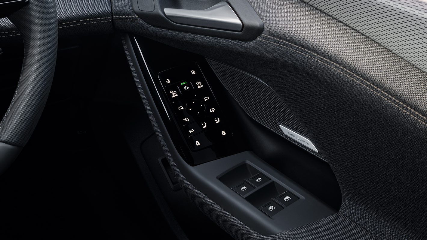 エクステリアミラー調整、ヘッドライト操作、シートメモリー機能などを統合したスマートドアパネル。グロスブラックで仕上げられた美しいパネルがモダンなインテリアと調和。ソフトタッチによる優れた応答性は直感的な操作を可能とします。