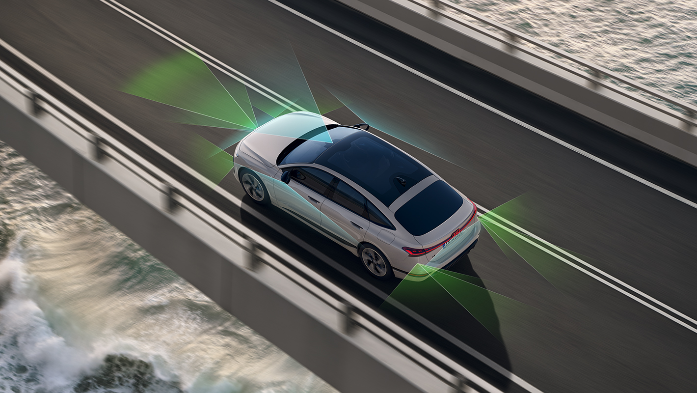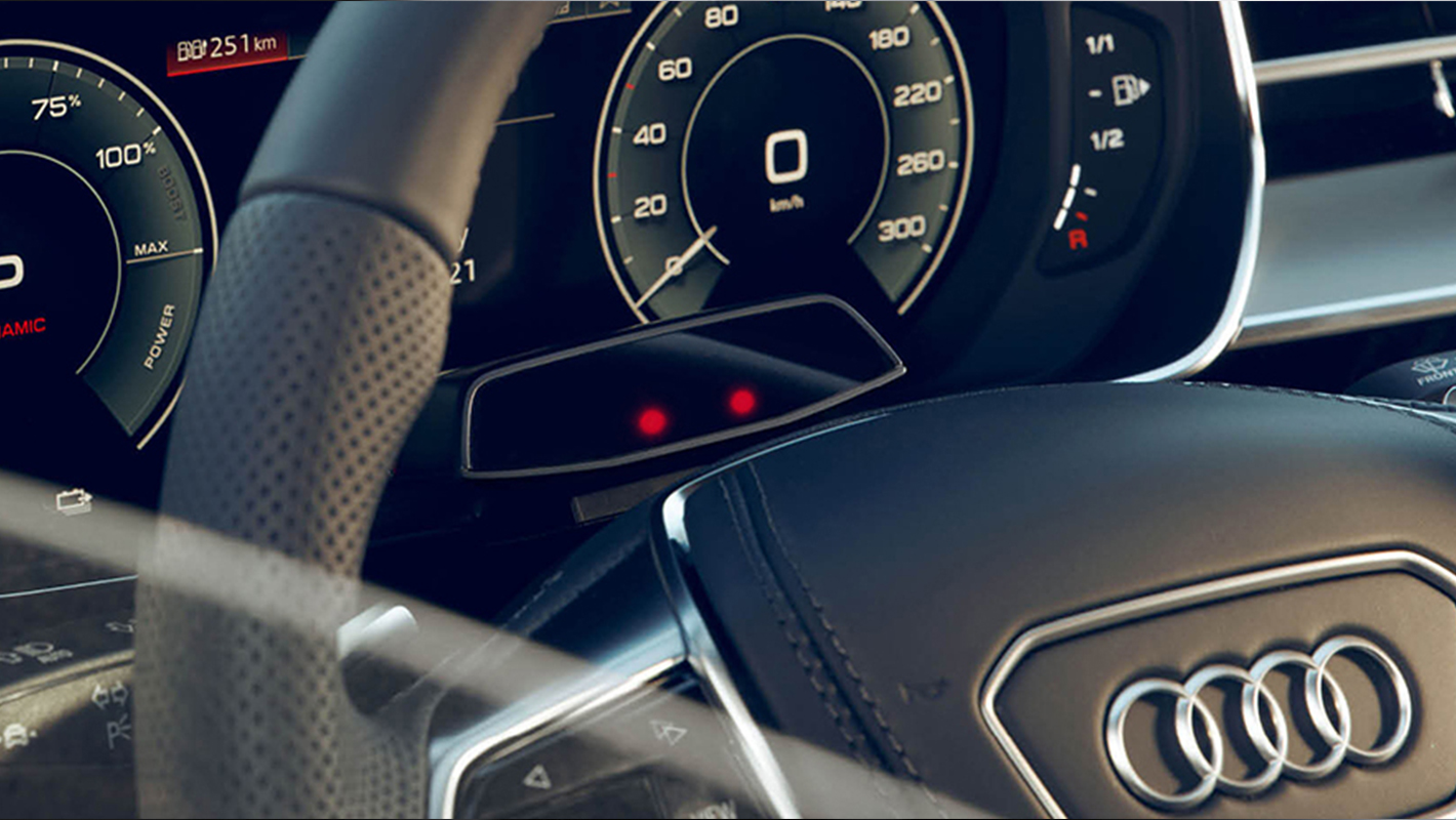 包み込まれるような感覚で車との一体感を味わいながら、走りを堪能できるコックピット。操作性と視認性に優れた美しい曲面デザインとOLED技術を採用したMMIパノラマディスプレイは、ドライビングポジションに合わせた最適なディスプレイ配置により、少ない視線移動で直感的に必要な情報を確認できます。サイドミラーの代わりにカメラ映像を使うバーチャルエクステリアミラー*は、悪天候時にもクリアな視界を確保。カメラ映像を映すディスプレイは視線移動を考え抜いた自然な位置に配置。先進のデジタルステージが、スマートな快適さに満ちたドライビング体験をもたらします。