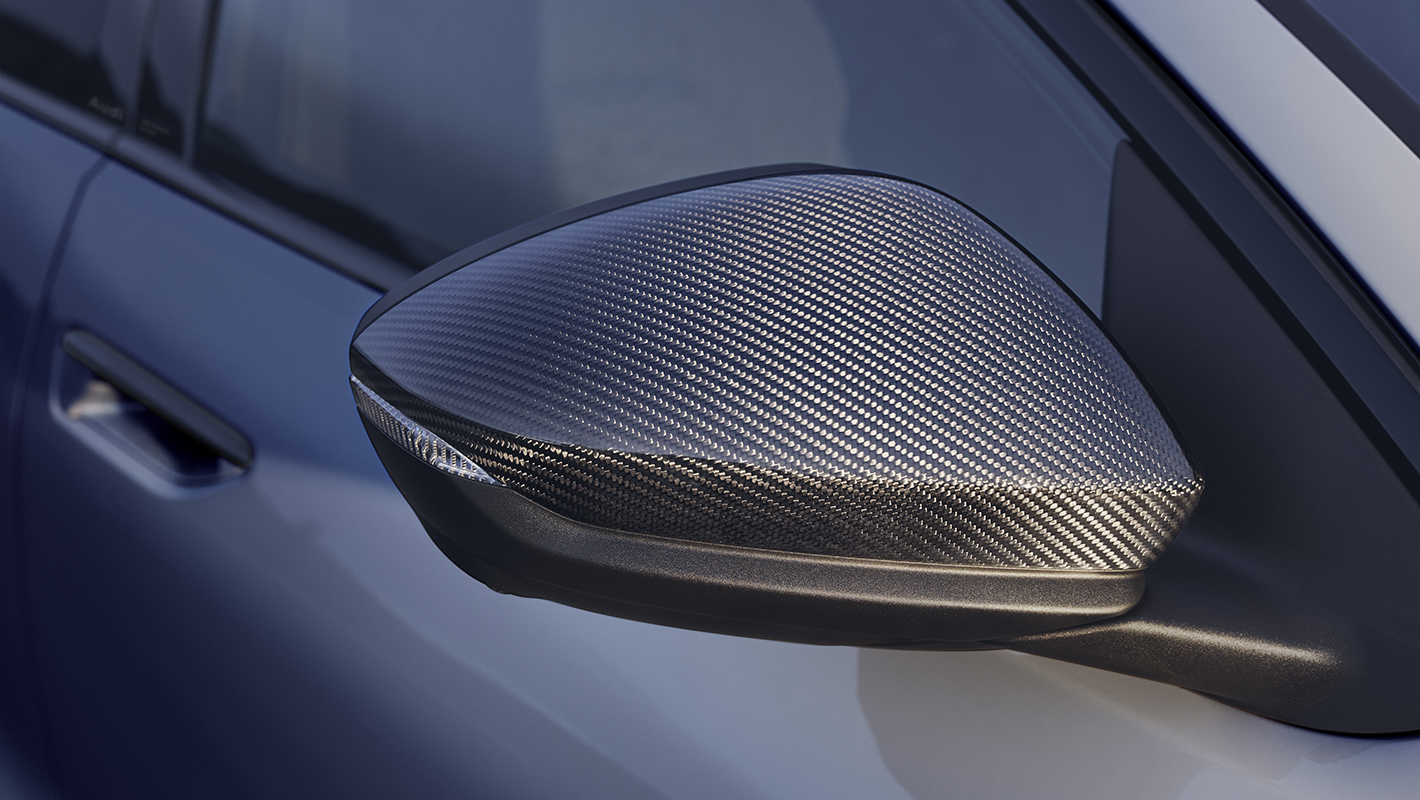 リアルカーボンを用いた、軽量化とスポーティさを演出するAudi 純正のカーボンミラーハウジング。洗練された一台へと仕上げます。