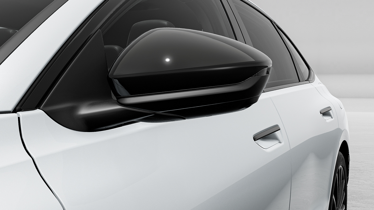 従来のエクステリアミラーの代わりに小型カメラシステムを搭載。後方の様子は車内のOLEDタッチディスプレイに映し出されます。従来のミラーに比べて空気抵抗と風切り音を低減するとともに、雨や雪などの悪天候時や夕暮れ時にも周囲を鮮明な映像で確認できます。視界の位置や角度は近接センサー付きタッチディスプレイに触れることで調整可能。駐車時、右左折時、高速走行時など、様々なシーンで高い視認性を提供します。