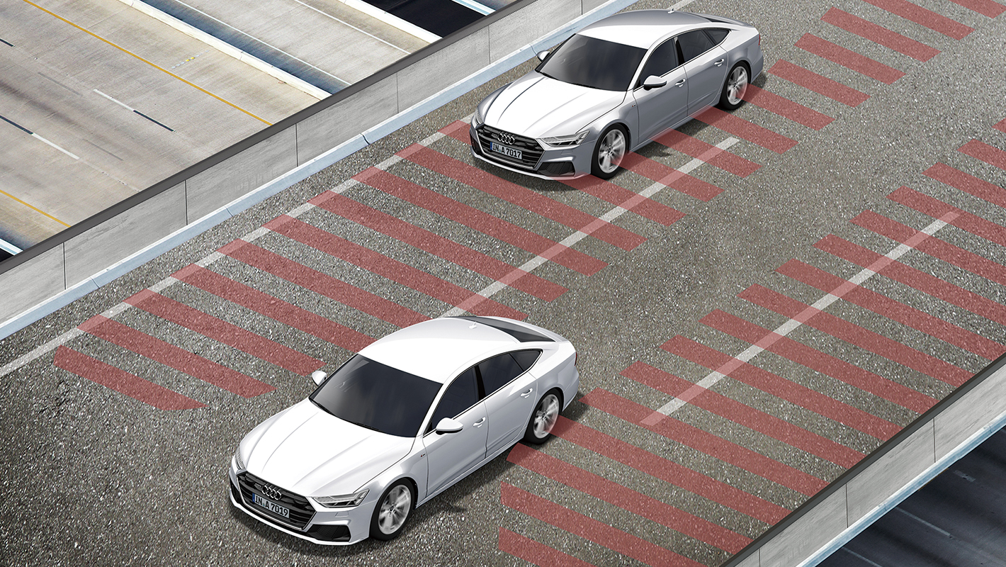 車両のリヤに設置された、レーダーセンサーが捉えたデータを利用して、後方から接近する車両を監視。追突されるリスクが検知された場合、アウディプレセンスベーシックを起動します。