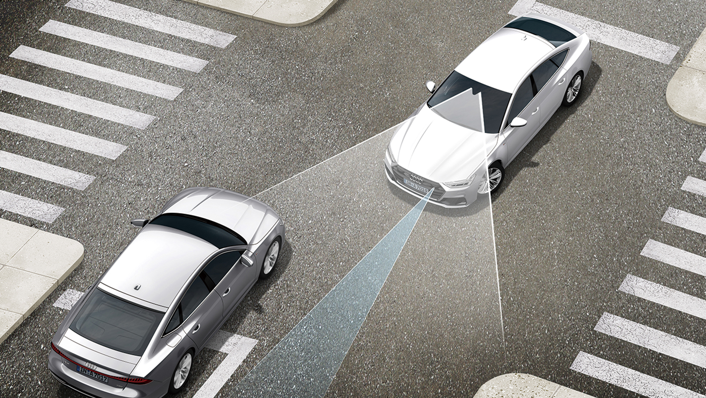 フロントクロストラフィックアシストの機能として、車両の左右から接近する車両を監視。衝突されるリスクが検知された場合、アウディプレセンスベーシックを起動します。アウディプレセンスベーシック、アウディプレセンスリヤと連携し、全周囲からの衝突に備えることができます。