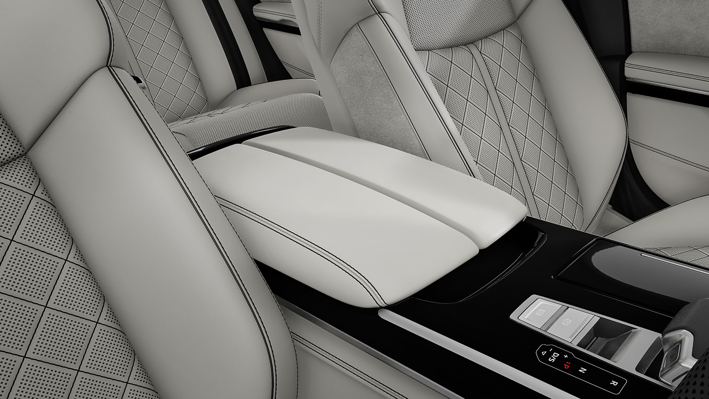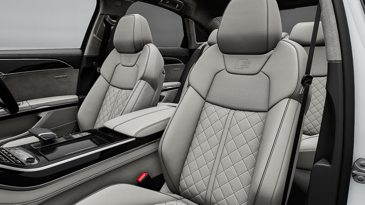 幅広い電動調整機能を備えた、ホールド性の高いスポーツシート。シートサイドボルスターはコーナリングの際、身体をしっかりサポートする形状に。バックレストのSロゴ、パーフォレイテッド加工を施した上質で温かみのあるバルコナレザー、コントラストのある印象的なダイヤモンドステッチが、スポーティでエレガントな雰囲気を際立たせます。