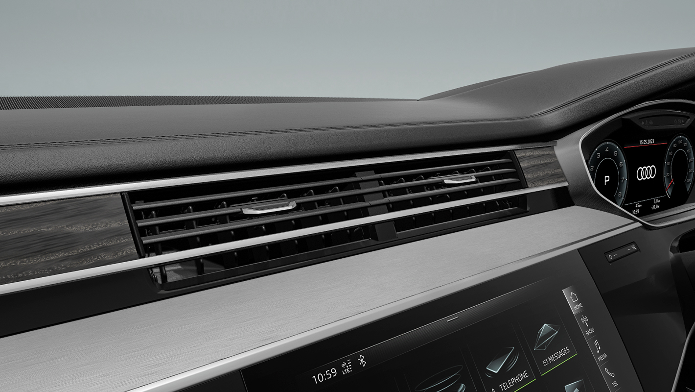 開放感あふれる開口部の大きな遮光ガラスを採用した先進的デザインのサンルーフです。電動で開閉やチルトアップの操作が可能。アドバンストキーによって外から開閉することもできます。快適で明るい室内空間を実現するとともに効率的に換気を行えます。ウィンドディフレクター搭載で、チルトアップやフルオープン時でも風切り音を軽減します。Audi A8 Lでは、2セクションで構成されます。