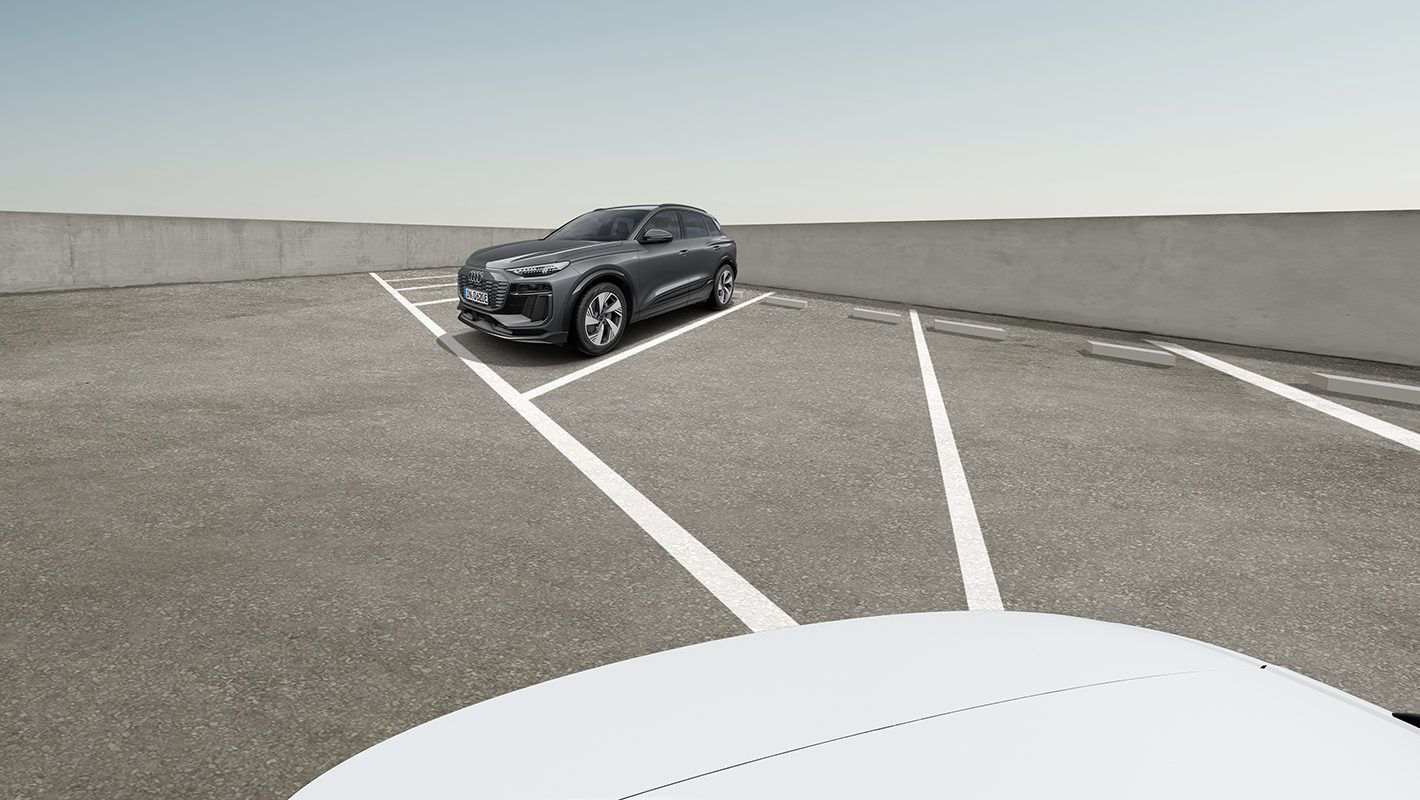 車両周囲の情報を聴覚と視覚で確認でき、駐車時の操作をサポートするシステムです。バンパーに内蔵された超音波センサーが感知した物体までの距離をMMIタッチディスプレイに表示。また、ステアリングの角度から最適な経路を事前に算出したガイドラインも表示されます。リバースギアを選択すると起動します。