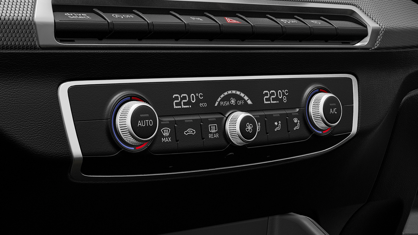 太陽光を感知して、室温、風量、風流を自動調整。エアコンの温度は運転席、助手席で個別に設定できます。