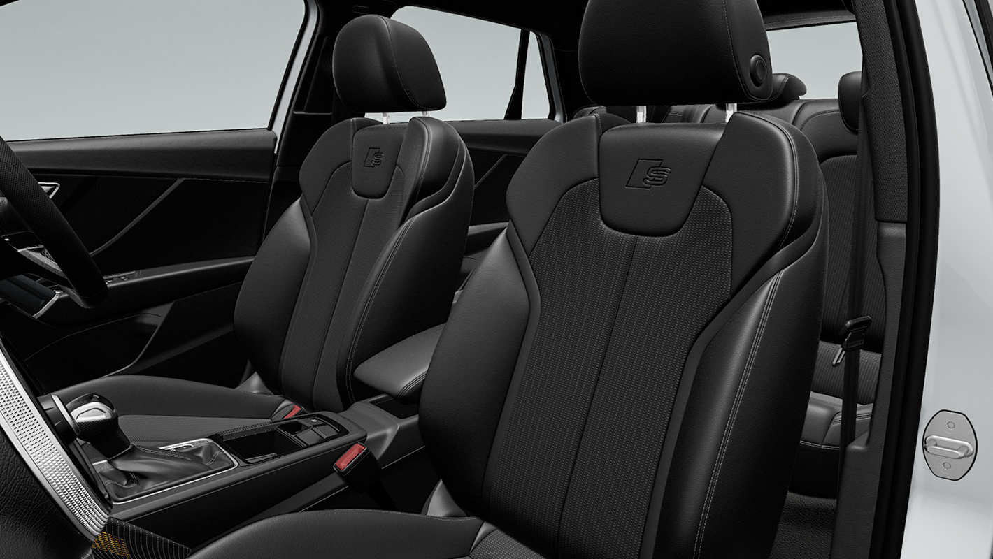 スポーツシート (フロント) - クロス/レザー S lineロゴ - ブラック (ロックグレーステッチ)