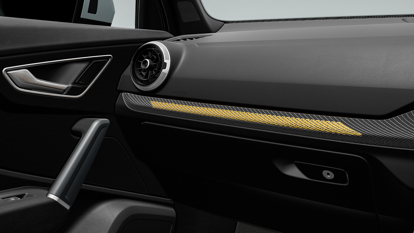 バーチャルコックピットプラス、タッチディスプレイ、スクリプトクロスで仕立てられたスタンダードシートを標準装備。オプションのS lineプラスパッケージを選択すれば、S lineロゴがエンボスで刻まれたクロス/レザーのスポーツシートやステンレススチールフットペダル、アルミニウムルックインテリアなどが装備され、走りへの感性を刺激するインテリアに。