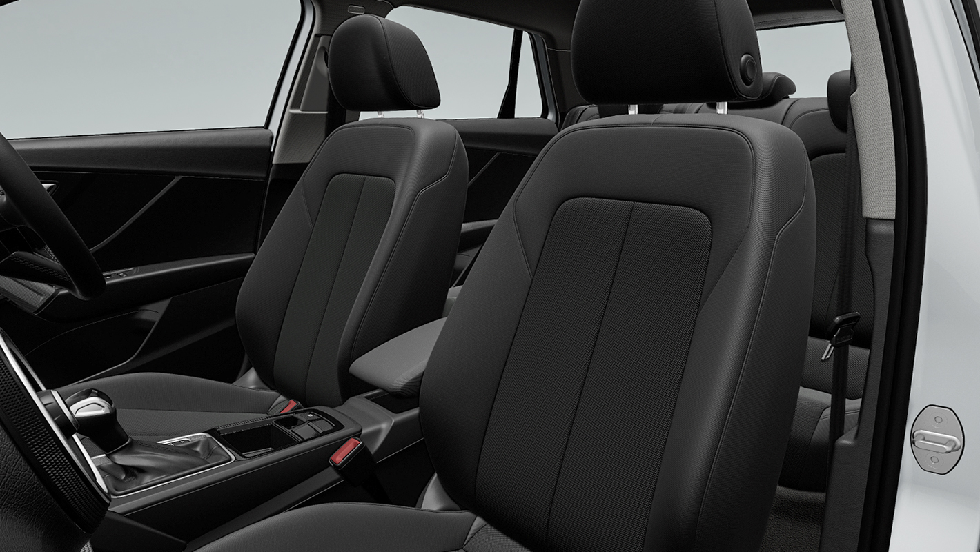 バーチャルコックピットプラス、タッチディスプレイ、スクリプトクロスで仕立てられたスタンダードシートを標準装備。オプションでブラックのレザー/アーティフィシャルレザーシートを選択することもできます。