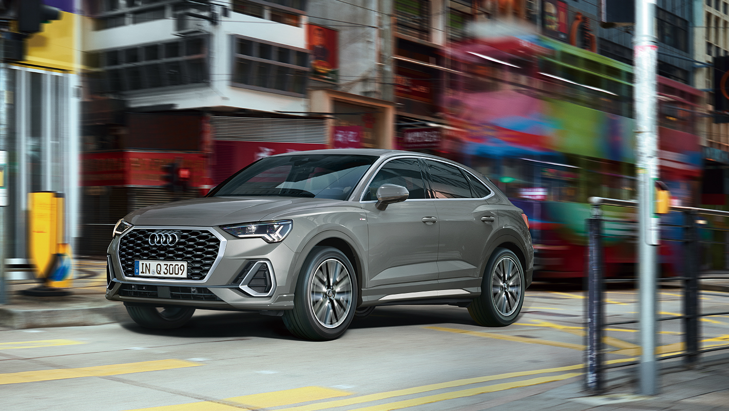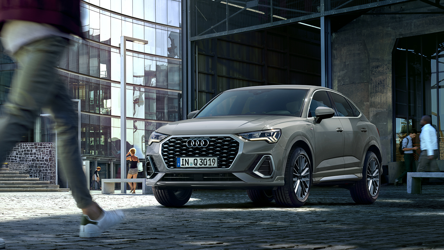 力強く、躍動的なAudi Q3のデザイン。ダイナミックな曲線とホイールアーチ。LEDヘッドライトのシャープな眼差し。その表情から走りへの自信を確信されるはずです。SportbackはSUVとクーペの融合という独創的なデザインを実現。
