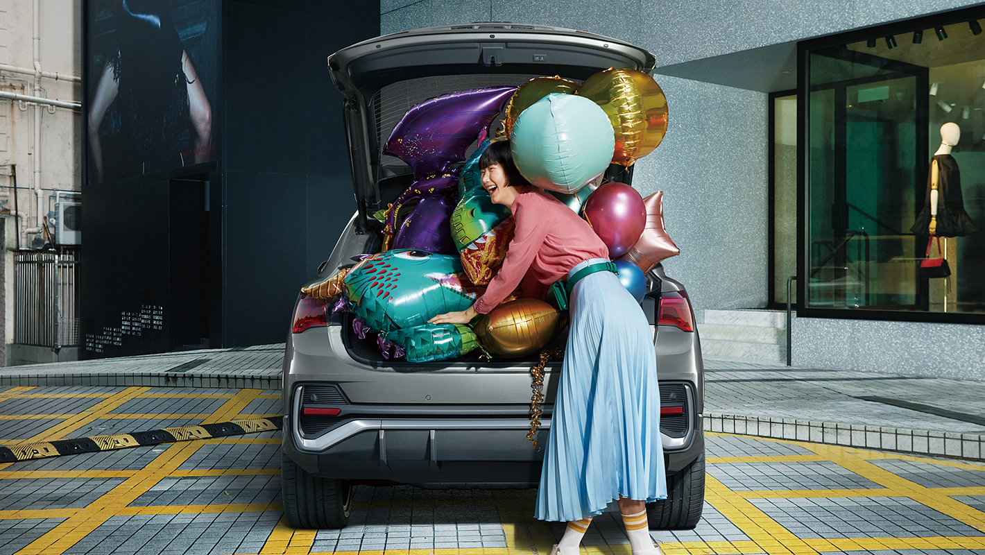 リヤシートは3分割可倒式で前後調整とシートリクライニングが可能。ヘッドクリアランスのゆとりを十分に確保しました。ラゲッジスペースはリヤシートを倒すことで大きく拡張することができ、載せる物や目的に合わせて、自在なアレンジも容易です。