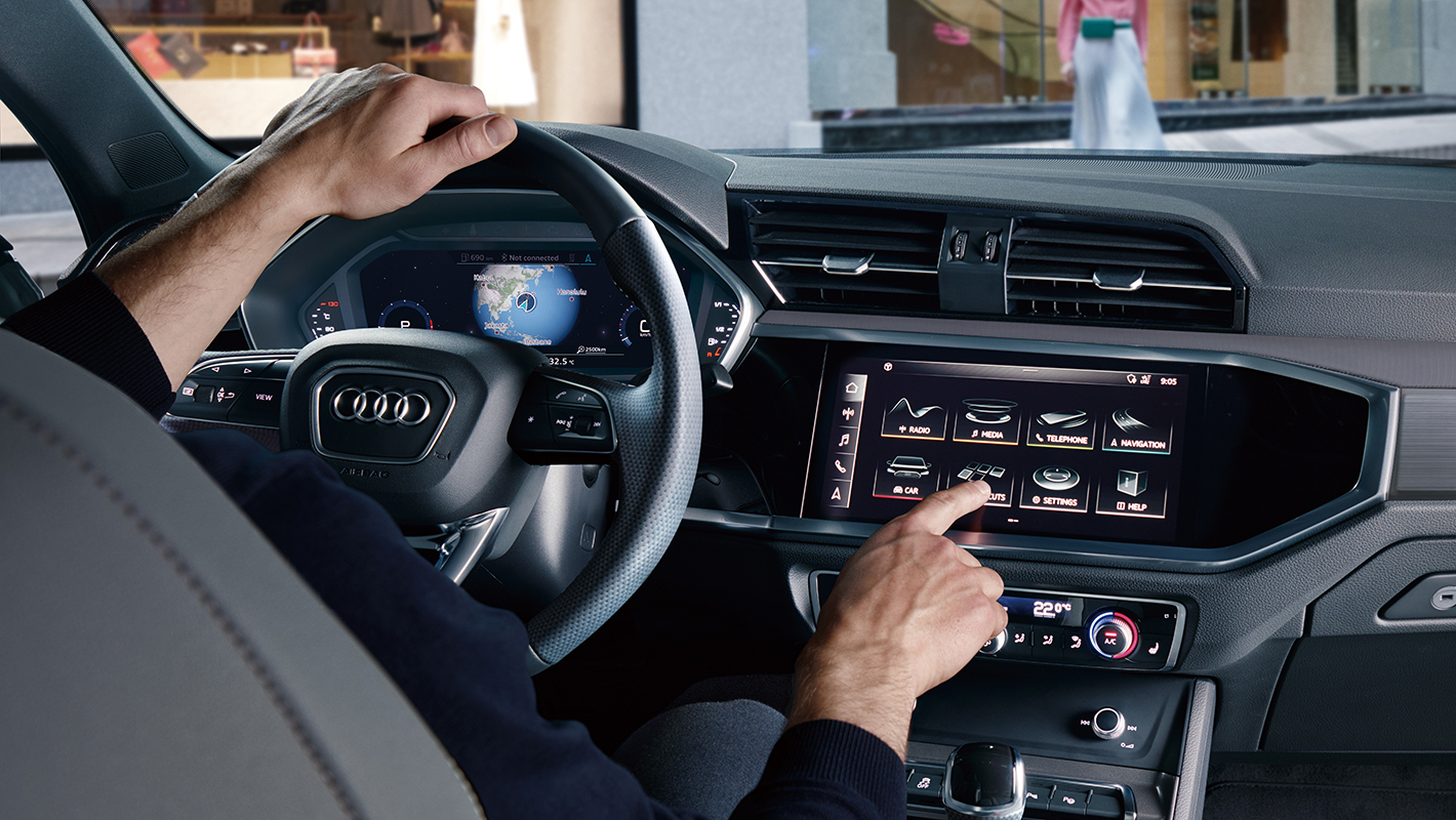 直感的で簡単に操作できるインフォテインメントを採用。高解像度液晶ディスプレイに、メーターやナビゲーションマップなどを表示し、ステアリングのボタンから操作が可能なバーチャルコックピット。MMIナビゲーションは、指のピンチインアウトでのマップの縮尺変更や手書き文字入力に対応。スマートフォンインターフェースに接続すれば、音楽、MAP、電話などのアプリをMMIタッチディスプレイで操作できます。