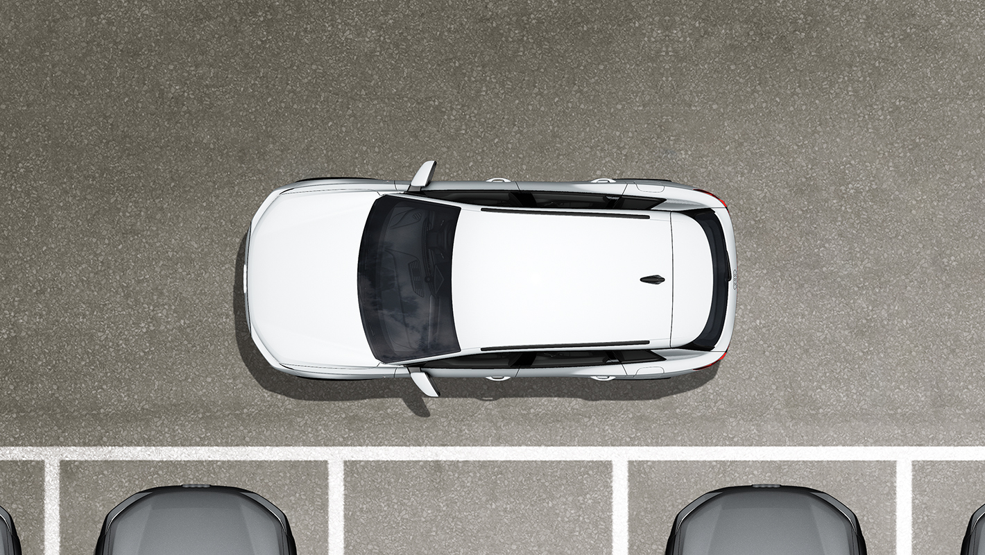 4台の広角サラウンドビューカメラが、車両の全周囲360度を瞬時に捉え、様々な角度からの映像を映し出すことで駐車時等の操作がより簡単になります。ギアをリバースに入れるか、センターコンソールのボタンで起動します。