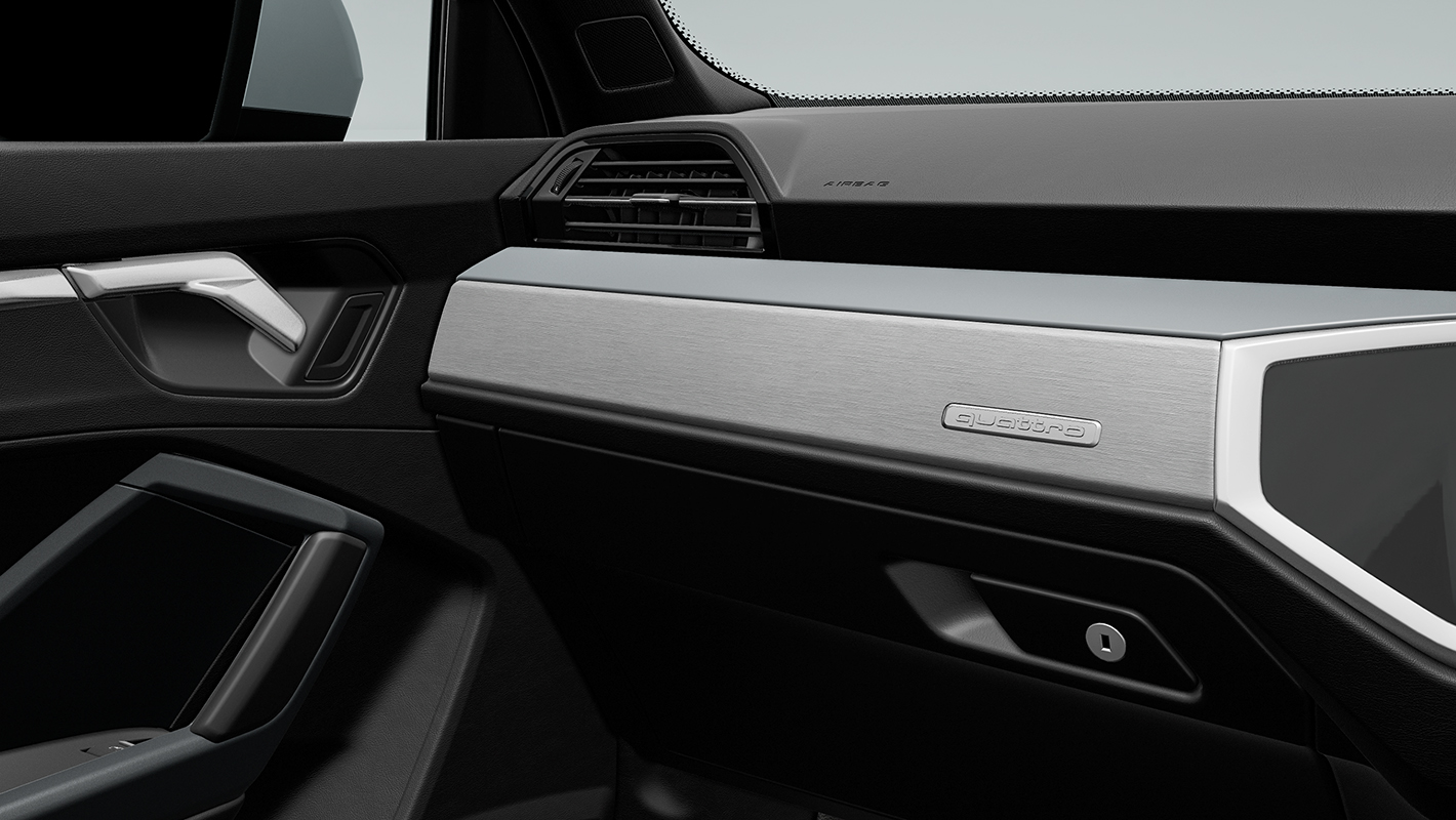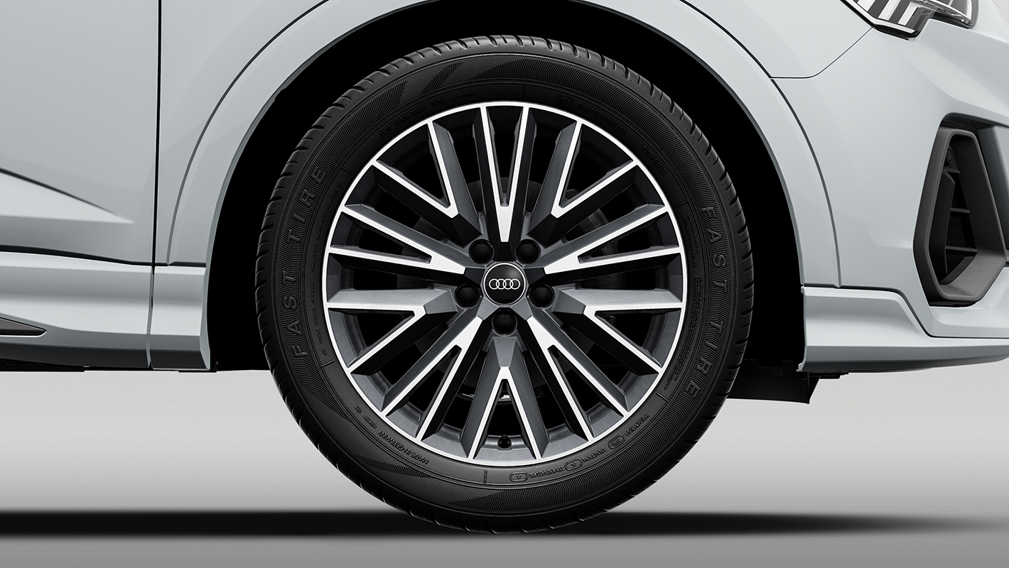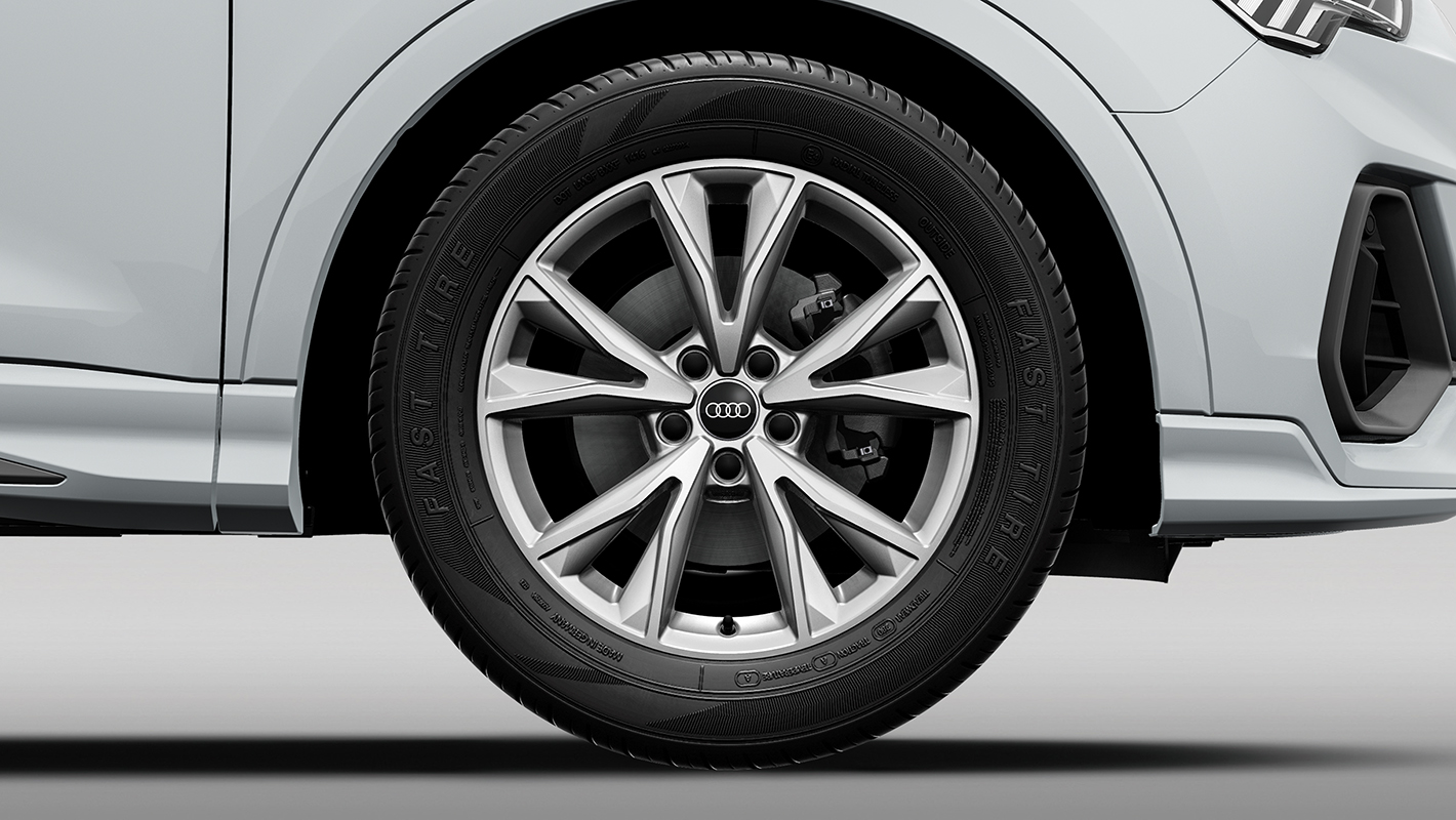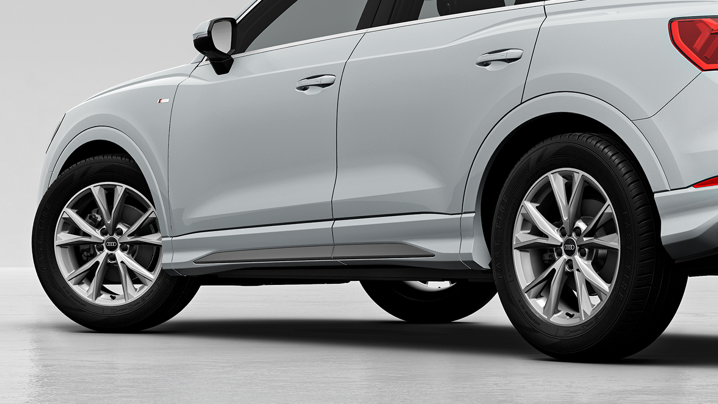 アスリートのような造形のボディをスポーティに磨き上げたS line。ダイナミックな大型エアインレットやフラットなブレードを備えたバンパーがフロントフェイスを引き締めます。Audi Q3では、縦のラインを強調したデザインでSUVの力強さを表現するシングルフレームグリルと、18インチアルミホイールを採用。Audi Q3 Sportbackはシャープな印象を与えるハニカムメッシュのシングルフレームグリルと、19インチアルミホイールを装備。