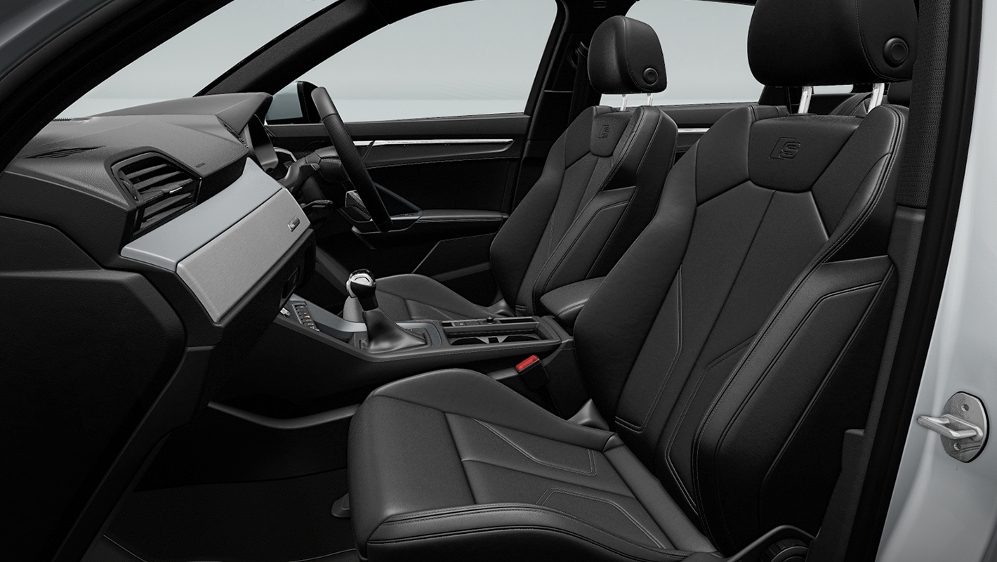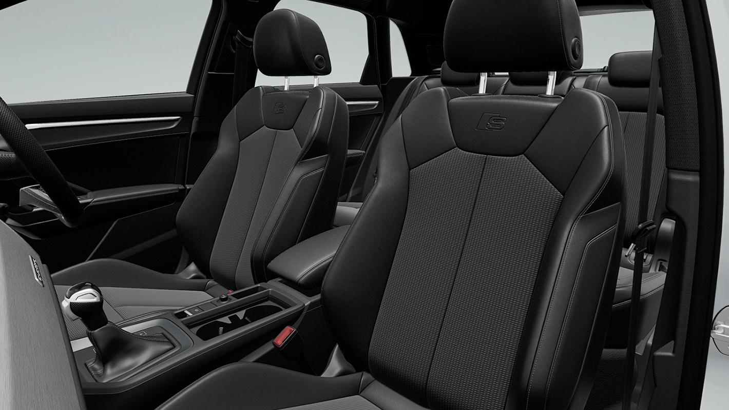 スポーツシート (フロント) - レザー/アーティフィシャルレザー S lineロゴ - ブラック (ロックグレーステッチ)