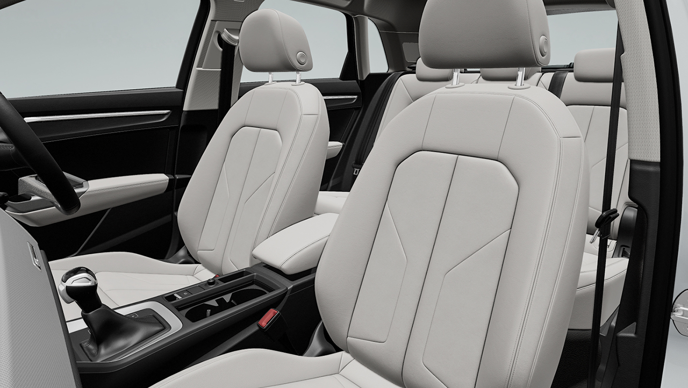 advancedには座り心地に優れたスタンダードシートを標準装備。ルナシルバーのヘッドライニングが明るい室内を演出します。ラグジュアリーパッケージを選べば、シートの素材がレザー/アーティフィシャルレザーになり、さらにマルチカラーアンビエントライティング、センターアームレスト付3分割可倒式リヤシート 、ドアアームレスト アーティフィシャルレザーなどを装備した充実の空間に。