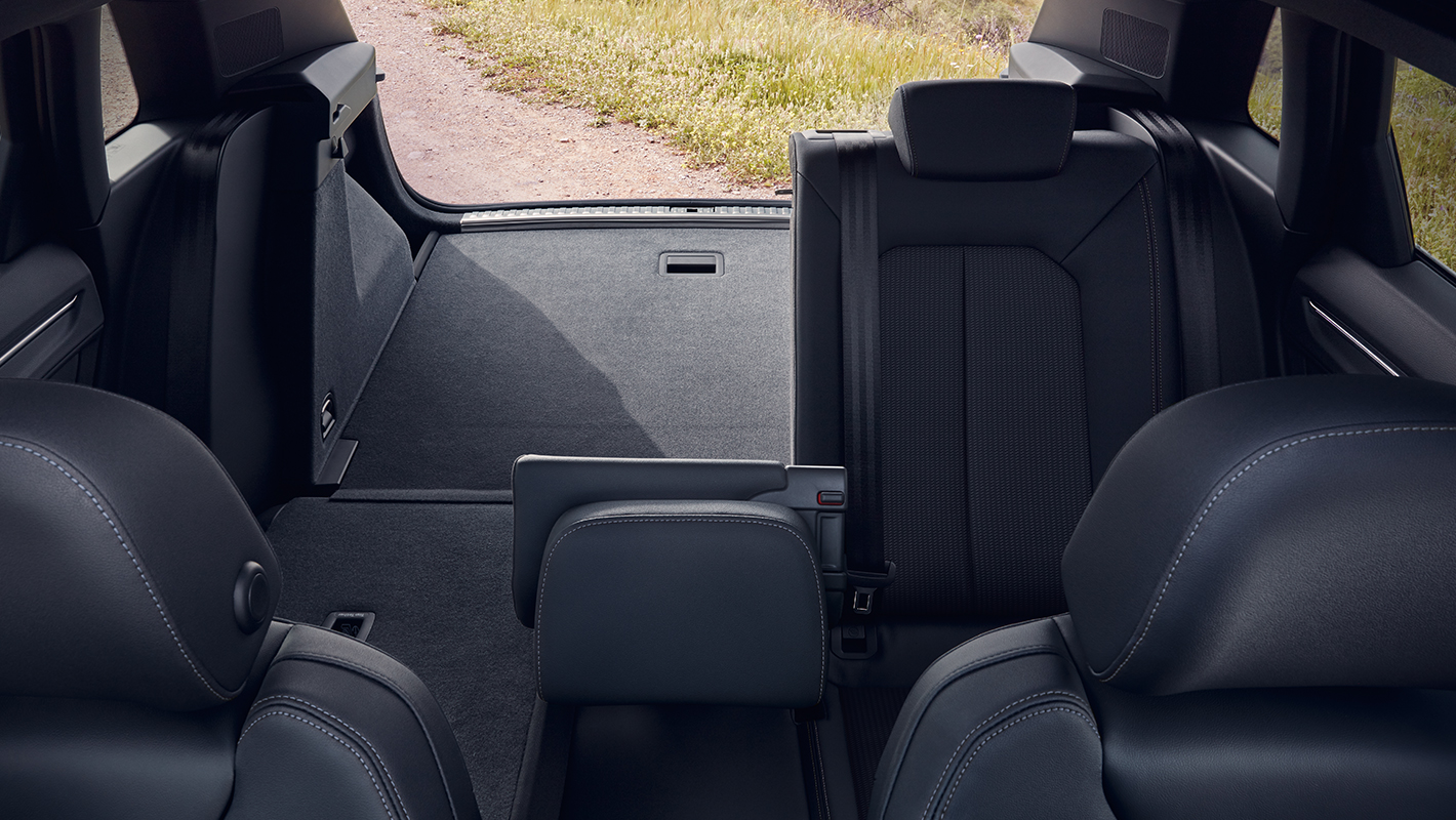後部座席は40:20:40の分割可倒式。座面は前後スライド可能。背もたれの角度を調整することができます。センターアームレストとカップホルダーを装備し、快適性を高めています。