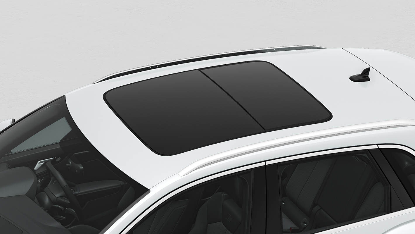サンルーフのガラス部分は自動開閉でき、チルトアップにも対応。リモートコントロールキーを使えば、車外からルーフの開閉操作も可能です。広く設けられたガラスから車内へ光が降り注ぎ、心地よい空間を作り出します。また、電動のサンブラインドや、ルーフオープン時の風切音を軽減するウィンドディフレクターも搭載しています。