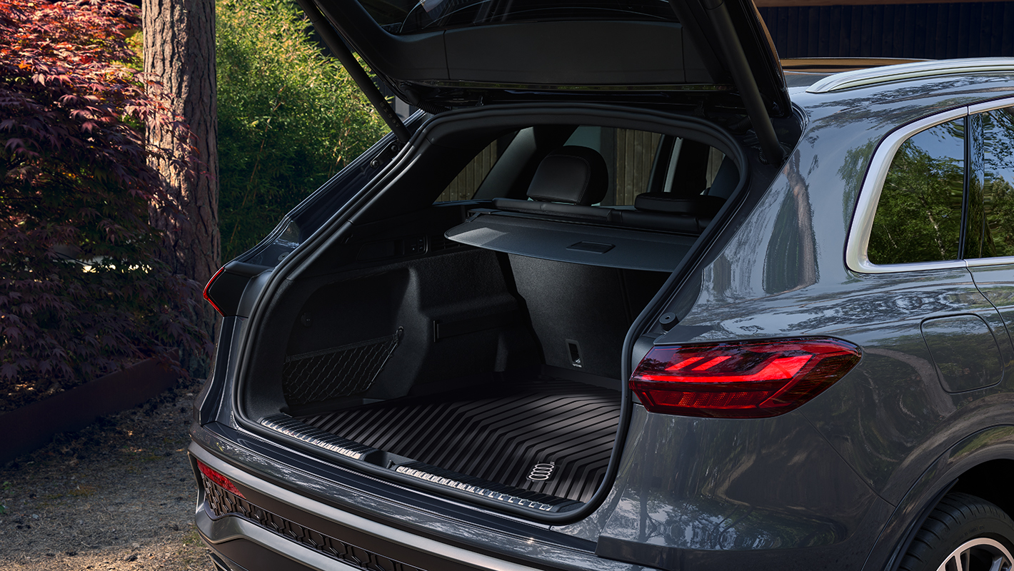 リヤウィンドウが鋭く傾斜するシャープでエレガントなシルエットでありながら、ラゲッジスペースではAudi Q5で520ℓ、Audi Q5 Sportbackでは515ℓのSUVにふさわしいゆとりある容量を確保し、リヤシートを倒すことでAudi Q5では1,473ℓ、Audi Q5 Sportbackでは1,415ℓまで拡大。ラゲッジコンパートメントカバーは、ラゲッジスペースのフロアの下に用意された収納スペースに格納でき、荷物の収納スペースがさらに拡大。大きな荷物の出し入れも容易に行うことができ、旅行やスポーツ、アウトドアなど多彩なシーンで優れた利便性を発揮します。