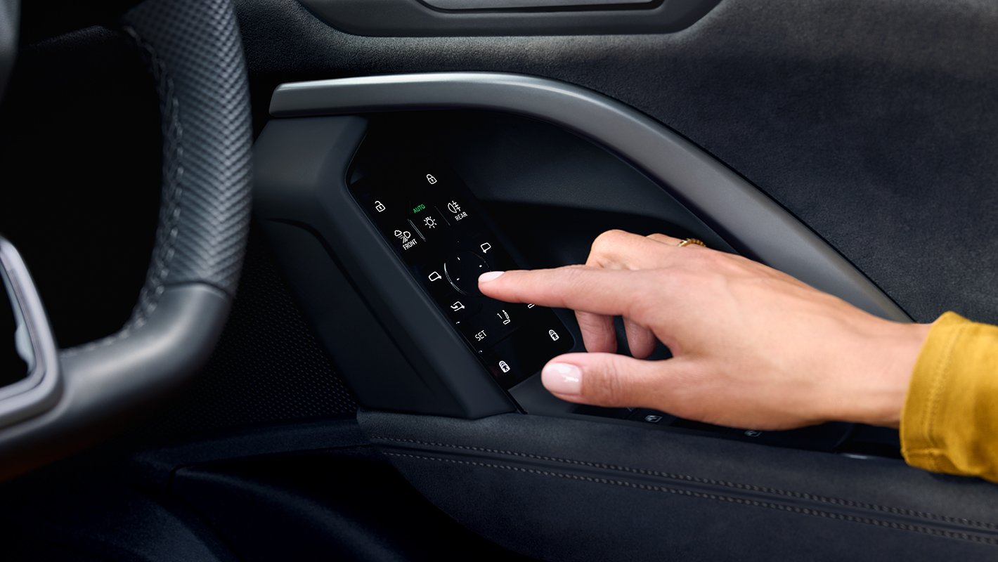 エクステリアミラー調整、ヘッドライト操作、シートメモリー機能などを統合したスマートドアパネル。グロスブラックで仕上げられた美しいパネルがモダンなインテリアと調和。ソフトタッチによる優れた応答性は直感的な操作を可能とします。