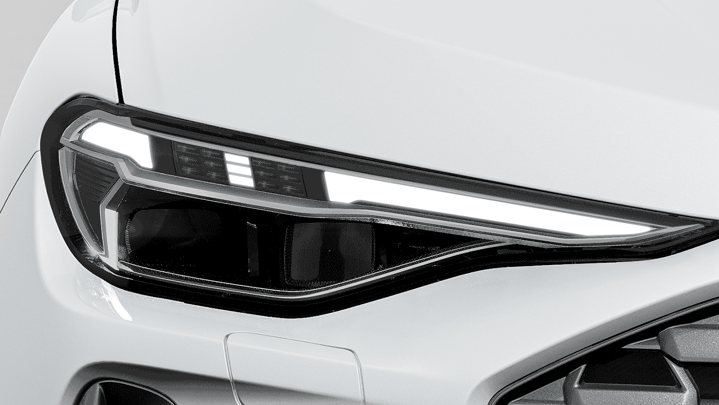 フロントビューに個性的な輝きをもたらす先進のライティングテクノロジー。マトリクスLEDヘッドライトの鋭く立体的なデザインは研ぎ澄まされた印象を形成し、その自信に満ちたキャラクターを表現。LED光源と精密な光学デバイスを組み合わせたカメラシステムによって、状況に合わせて配光を可変させ高度に制御します。デジタルライトシグネチャーは8つの点灯パターンを選択でき、柔軟なカスタマイズ性があなたの個性を際立たせます。
