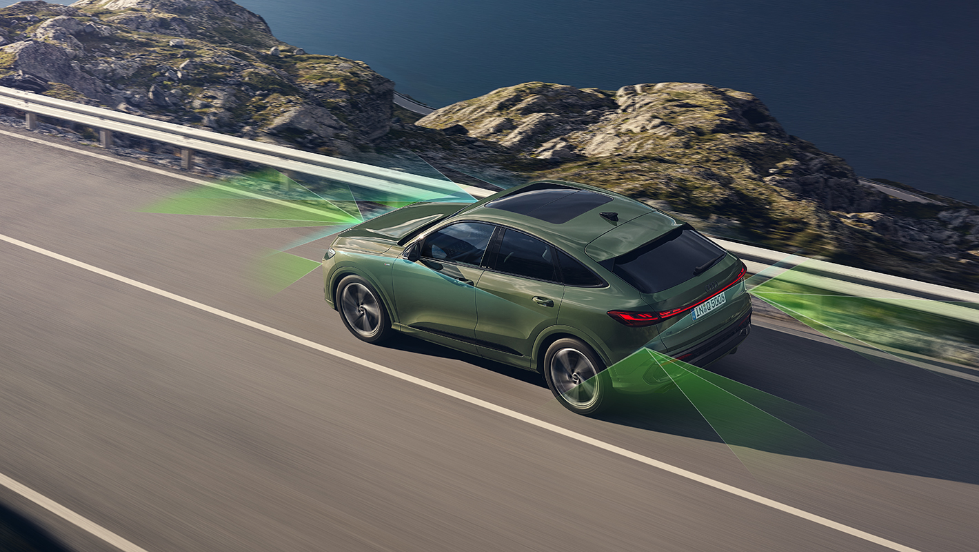 Audi Q5は、多彩な先進技術を組み合わせた、繊細なアシスタンスシステムを搭載。長距離ドライブの運転をサポートするアダプティブクルーズコントロールや衝突の回避支援、被害を軽減するフロントエマージェンシーブレーキアシスト、駐停車をサポートするパークアシストプラスなどを標準装備。快適性と安心感に包まれたドライビング体験をお届けします。