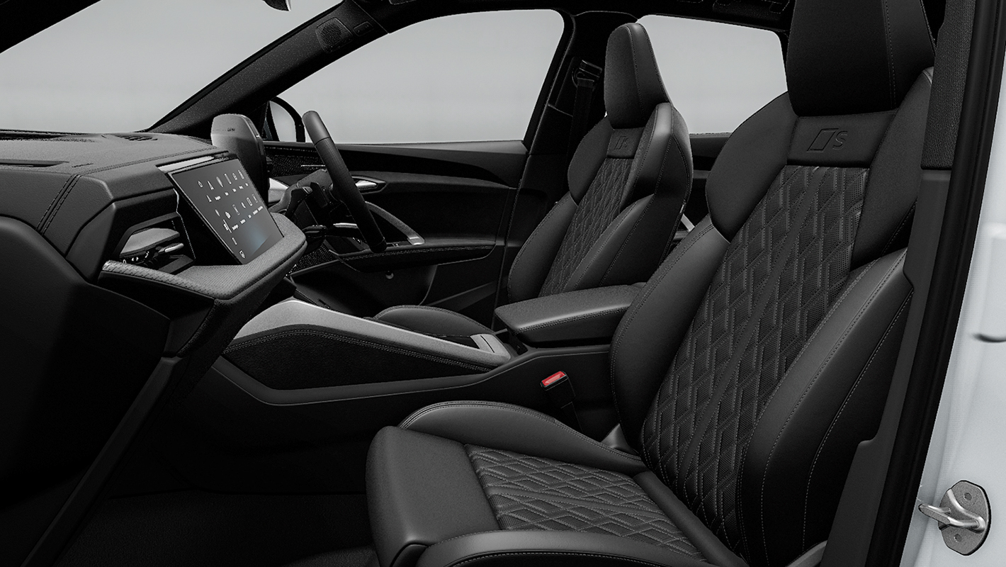 一体型ヘッドレストを備えたホールド性の高いスポーツシート。シートサイドボルスターはコーナリングの際、身体をしっかりサポートする形状に。パーフォレイテッド加工が施され、シートベンチレーション機能を搭載。マッサージ機能も備えています。バックレストのSロゴ、上質で温かみのあるファインナッパレザー、コントラストのある印象的なダイヤモンドステッチが、スポーティでエレガントな雰囲気を際立たせます。