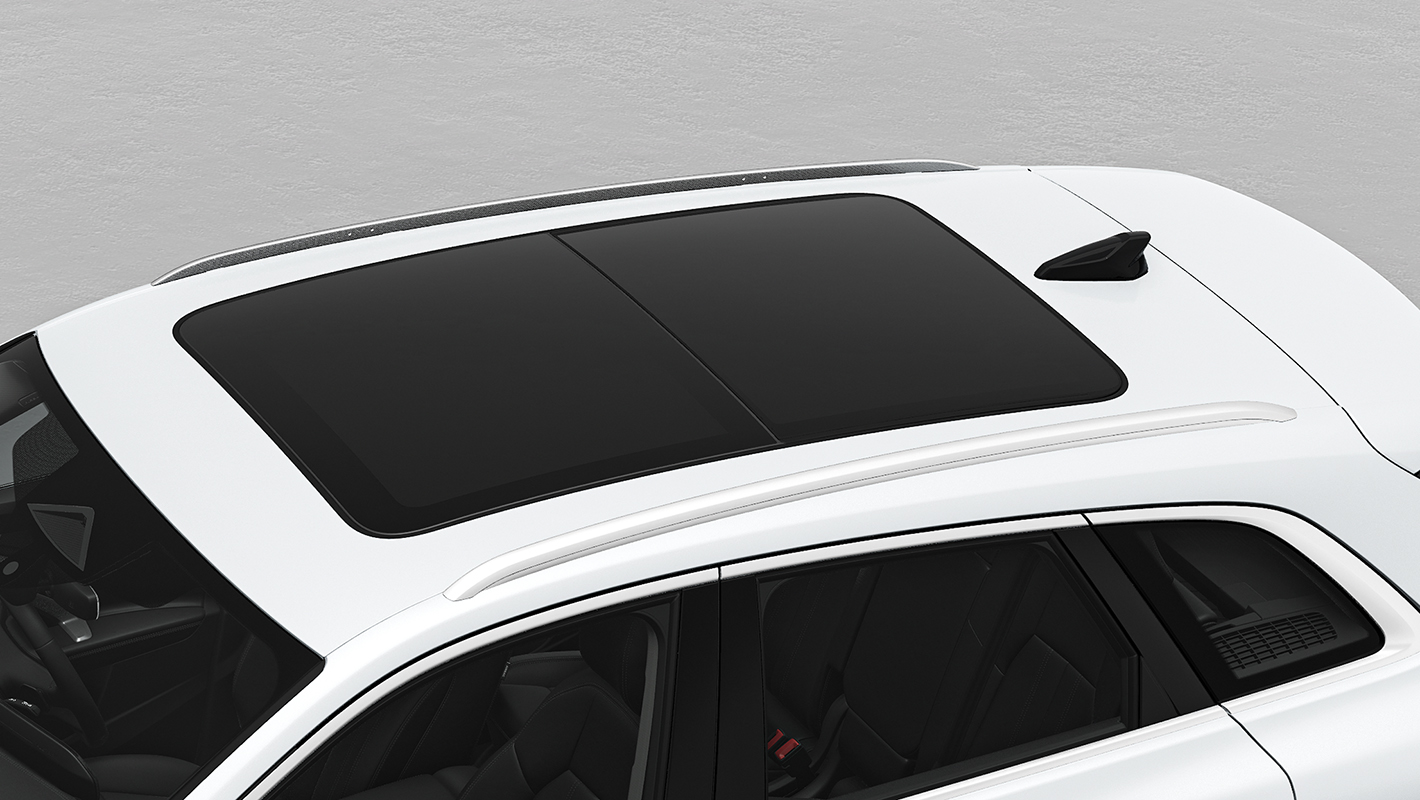2セクションからなる広い開口部を持ったガラスサンルーフ。電動で前方のガラス部分のチルトアップや開閉、サンブラインドの操作が可能。アドバンストキーによって外から開閉することもでき、快適で明るい室内空間を実現するとともに、効率的に換気を行えます。ウインドディフレクターがチルトアップ時やフルオープン時の風切り音を軽減します。