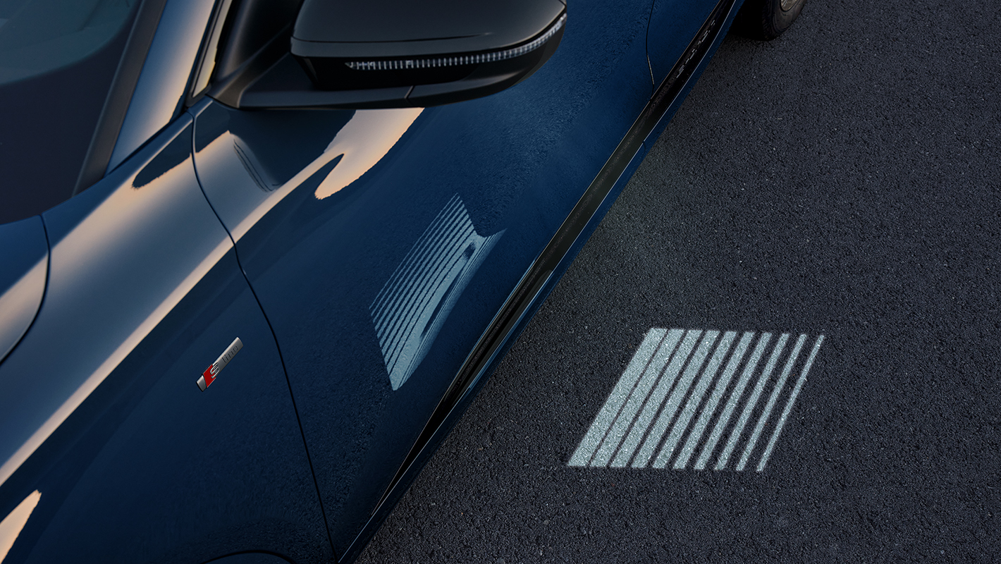 ドア開閉時にエクステリアミラーに内蔵されたライトからグラフィックエレメントが投影され、足元を明るく照らします。