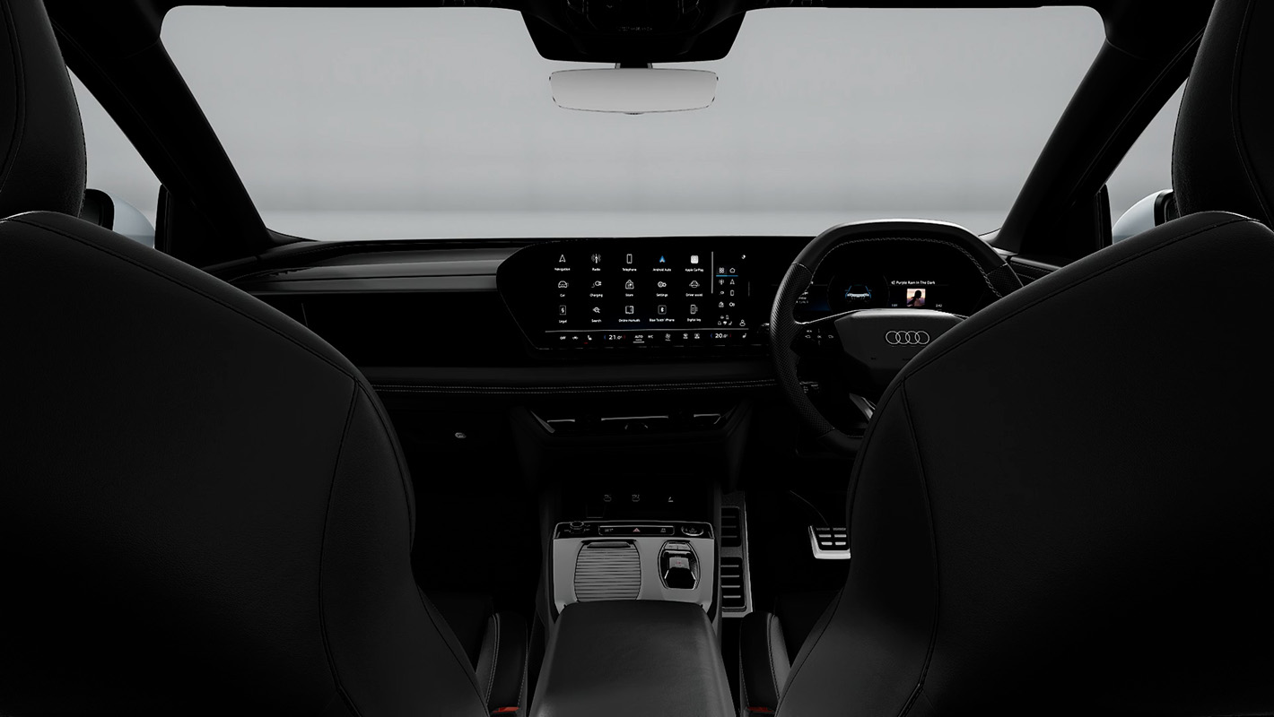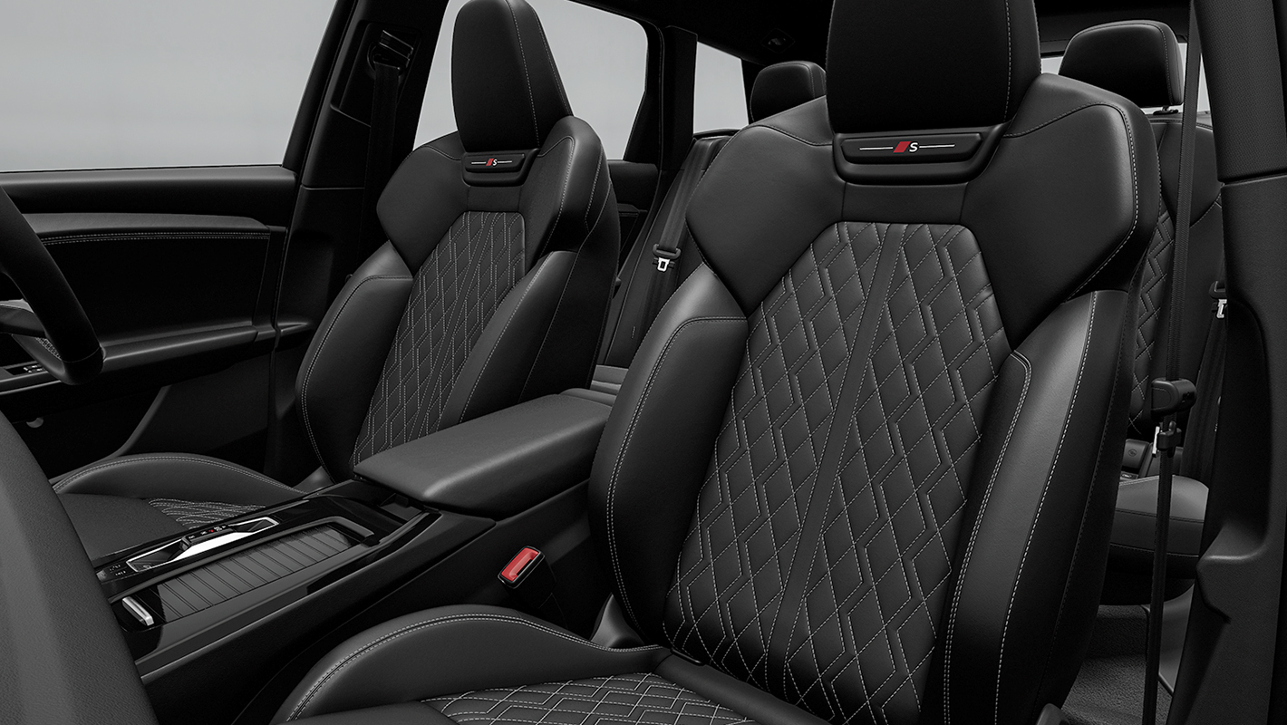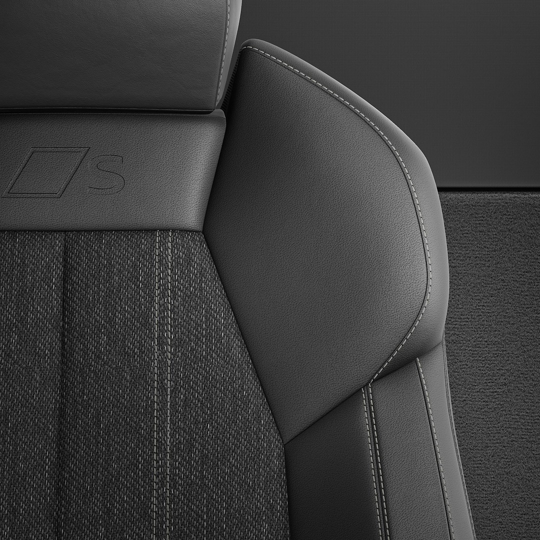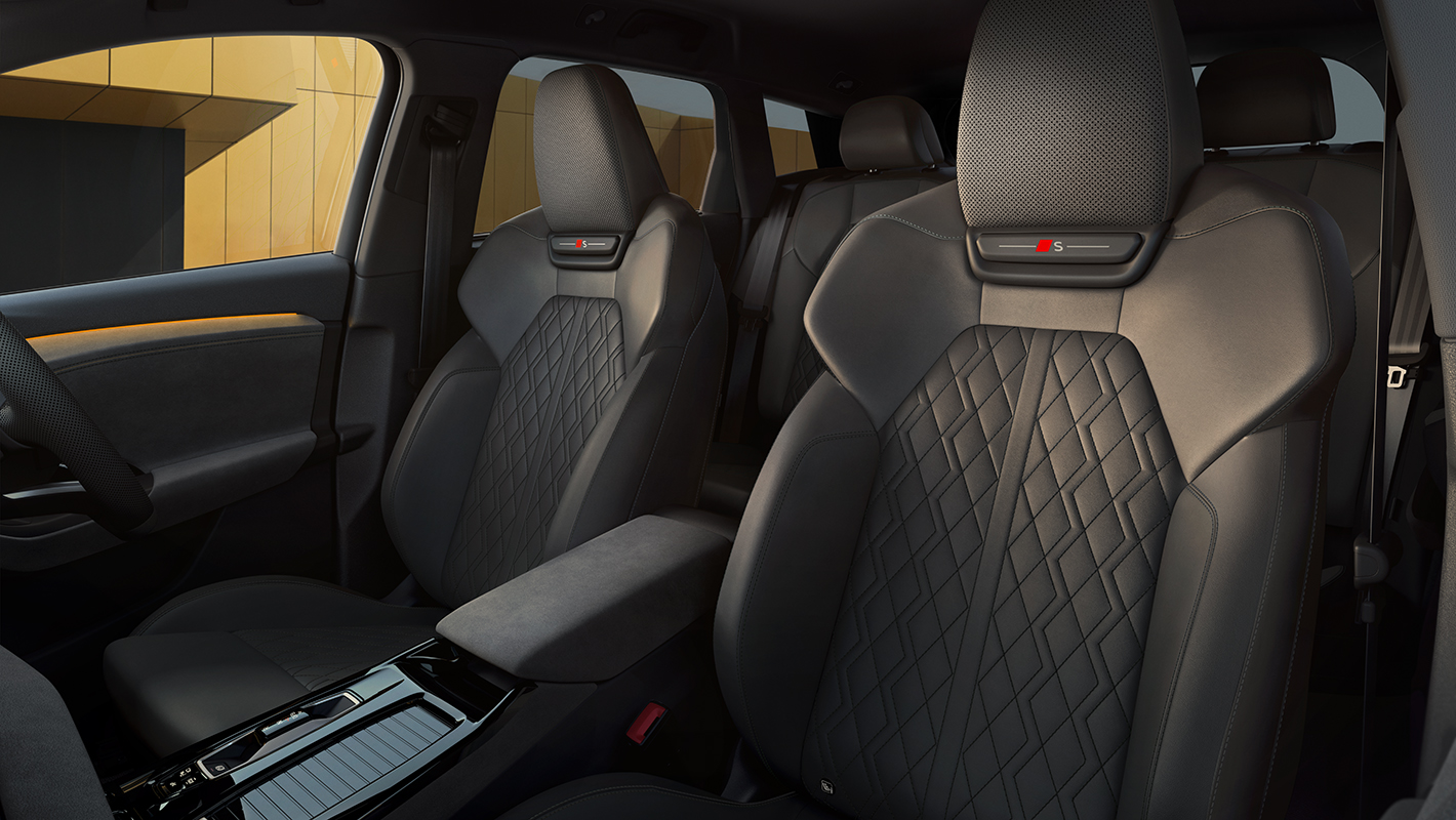 ※Audi Q6 e-tron advanced、Q6 e-tron quattro advancedにS lineパッケージ エラスティックメランジクロス/アーティフィシャルレザー (レザーフリーシート)を装備した場合。