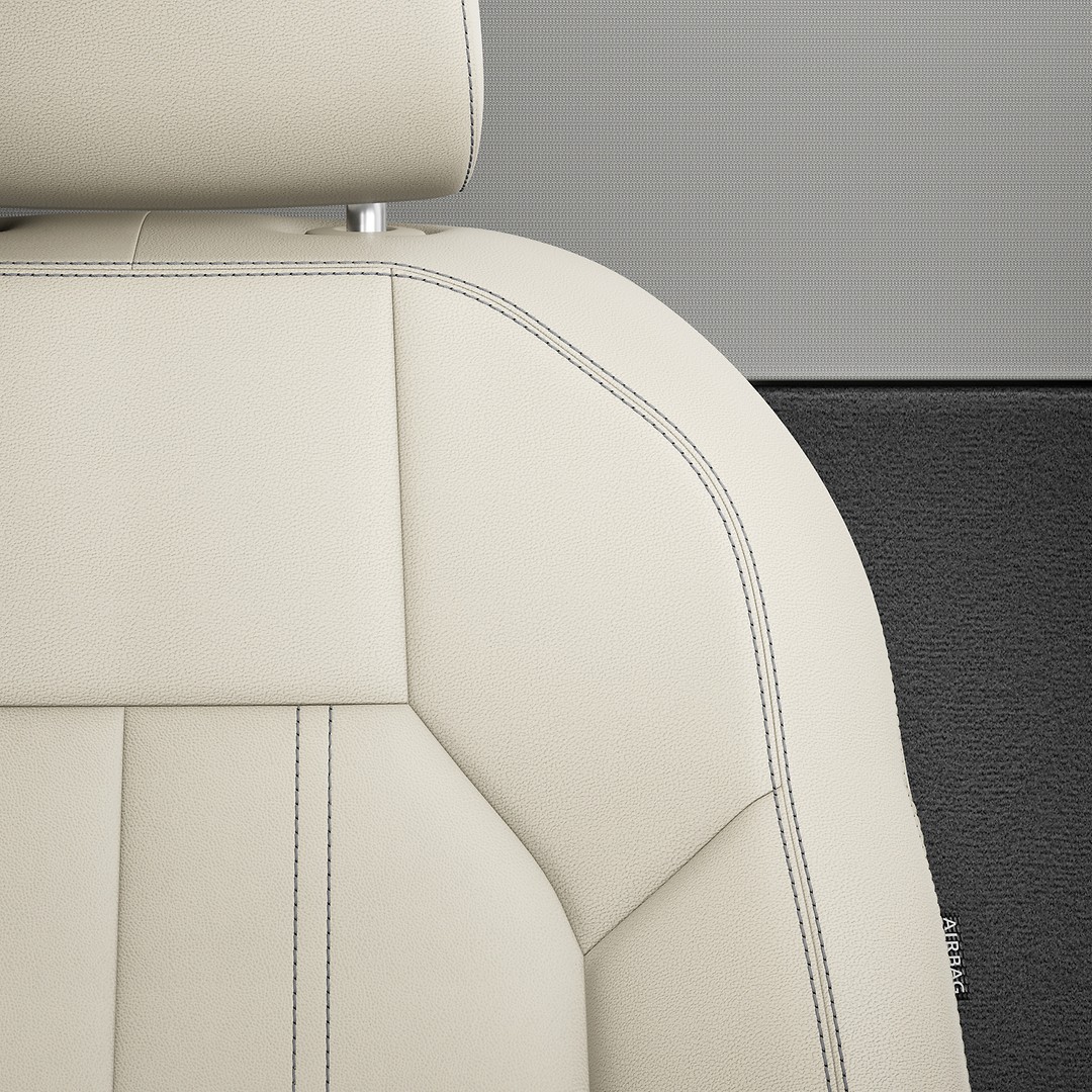 グロスブラックのセンターコンソール、アーティフィシャルレザーで仕立てられたインストルメントパネルデコラティブトリムやドアアームレスト、マットブラッシュトアルミニウム アンスラサイトのデコラティブパネルなどの洗練された素材が、スタイリッシュな雰囲気を演出し、インテリアデザインを引き立てます。シートには上質なレザー/アーティフィシャルレザーを標準装備。長距離移動でも快適な座り心地を提供します。シートカラーは標準でブラックとベージュの2色から選択可能。
