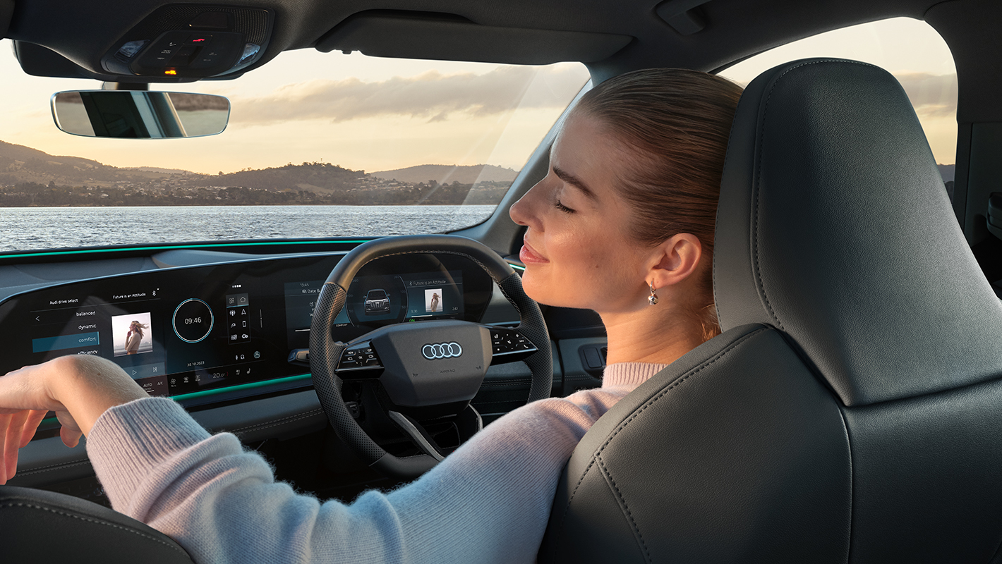電動化された先進的な走りを音響で表現します。走行速度に合わせてデジタルサウンドを生成し、車両後部に搭載されたスピーカーで再生。アウディドライブセレクトのモードに合わせて、静かな移動空間を愉しむ設定からスポーティでダイナミックな設定まで、お好きな音色に調整することも可能です。