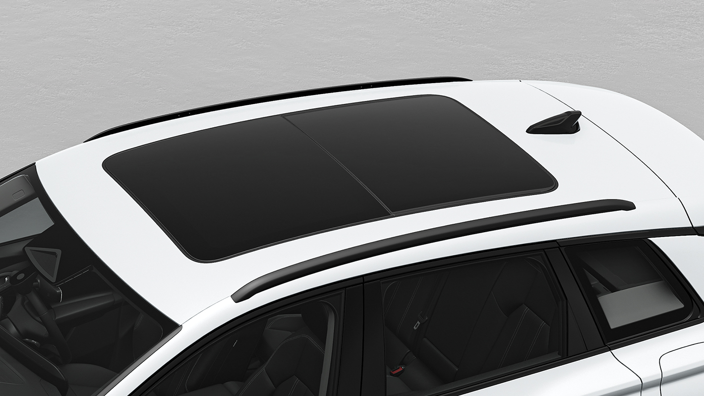 2セクションからなる広い開口部を持ったガラスサンルーフ。電動で前方のガラス部分のチルトアップや開閉、サンブラインドの操作が可能。アドバンストキーによって外から開閉することもでき、快適で明るい室内空間を実現するとともに、効率的に換気を行えます。ウインドディフレクターがチルトアップ時やフルオープン時の風切り音を軽減します。