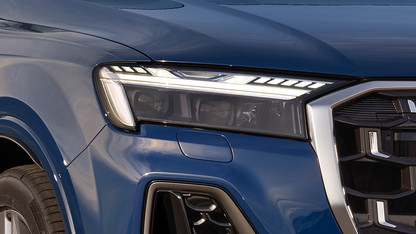 HDマトリクスLEDヘッドライトは、解像度が高い光で道路を高精細に照射。高速走行でハイビーム使用時にカメラが対向車や先行車を検知すると、そのエリアへのハイビームをオフにしつつ、それ以外の車間エリアや周辺は明るく照らし続けます。アウディレーザーライトは高速走行時に作動し、ハイビームの照射距離を約2倍に拡大。MMIタッチディスプレイで4つの点灯パターンを切り替えられるデジタルデイタイムランニングライトと、印象的な光の流れを生みだし周囲の注意を喚起するダイナミックターンインディケーターも搭載しています。