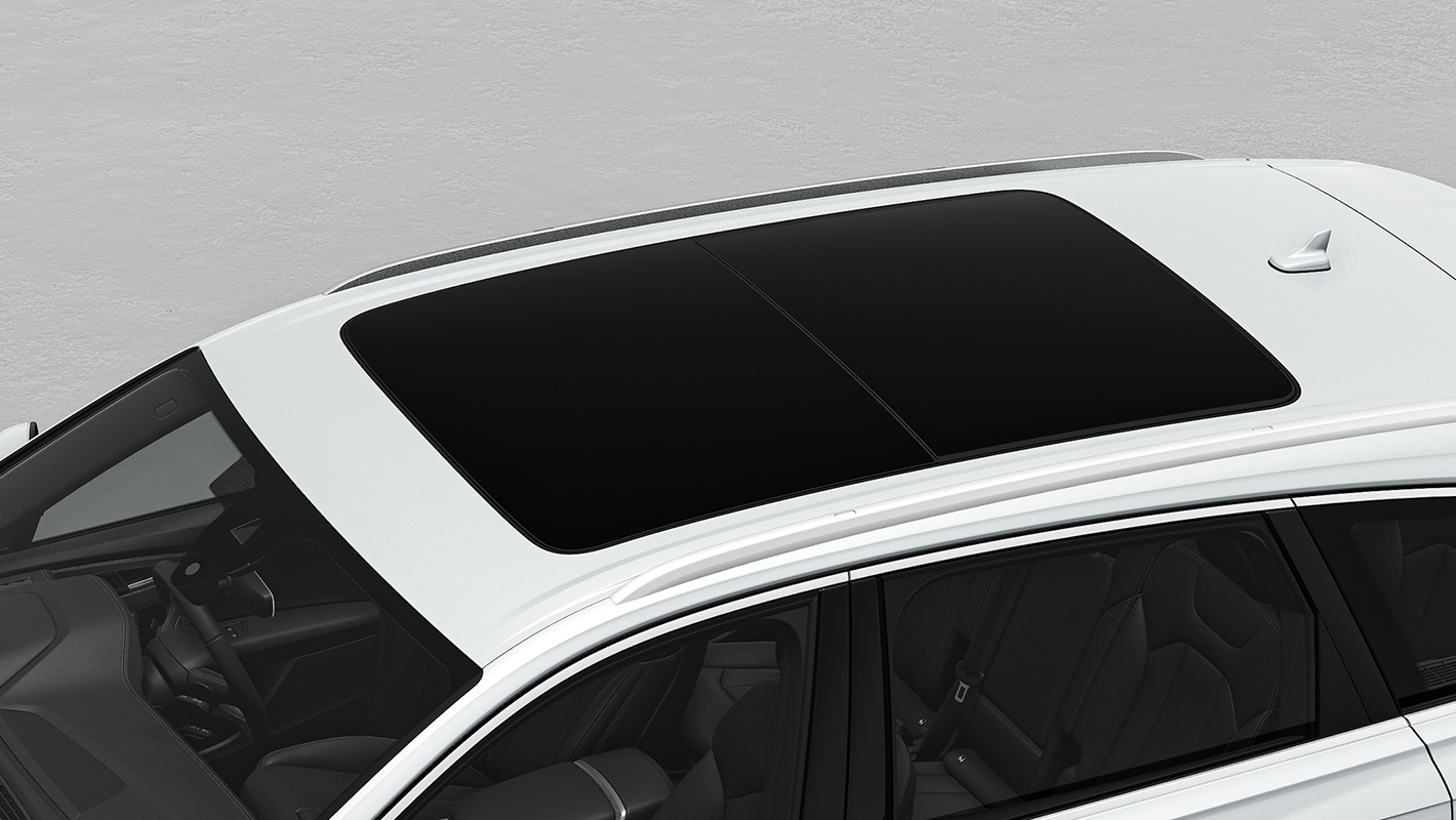 2セクションからなる広い開口部を持ったガラスサンルーフ。電動で前方のガラス部分のチルトアップや開閉、サンブラインドの操作が可能。アドバンストキーによって外から開閉することもでき、快適で明るい室内空間を実現するとともに、効率的に換気を行えます。ウインドディフレクターがチルトアップ時やフルオープン時の風切り音を軽減します。
