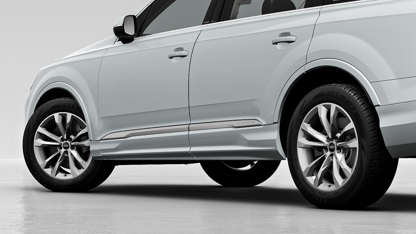 アダプティブエアサスペンションは、4輪すべての減衰特性を無段階に調整する電子制御式エアサスペンションです。車高とダンピングが自動的に制御され、快適な乗り心地とよりダイナミックな走りを実現。アウディドライブセレクトでオンロードからオフロードまで走行シーンに合わせた最適な車高に設定可能。また、荷物の積み込みを容易にするため、ラゲッジコンパートメントにあるボタンでリヤを低く設定することもできます。