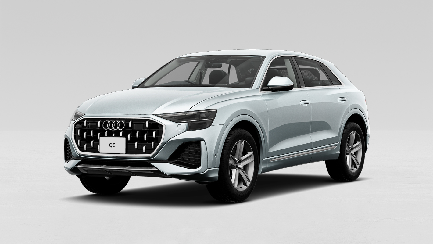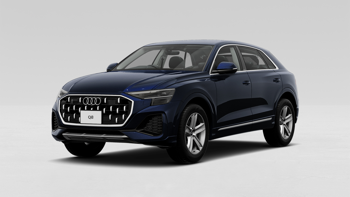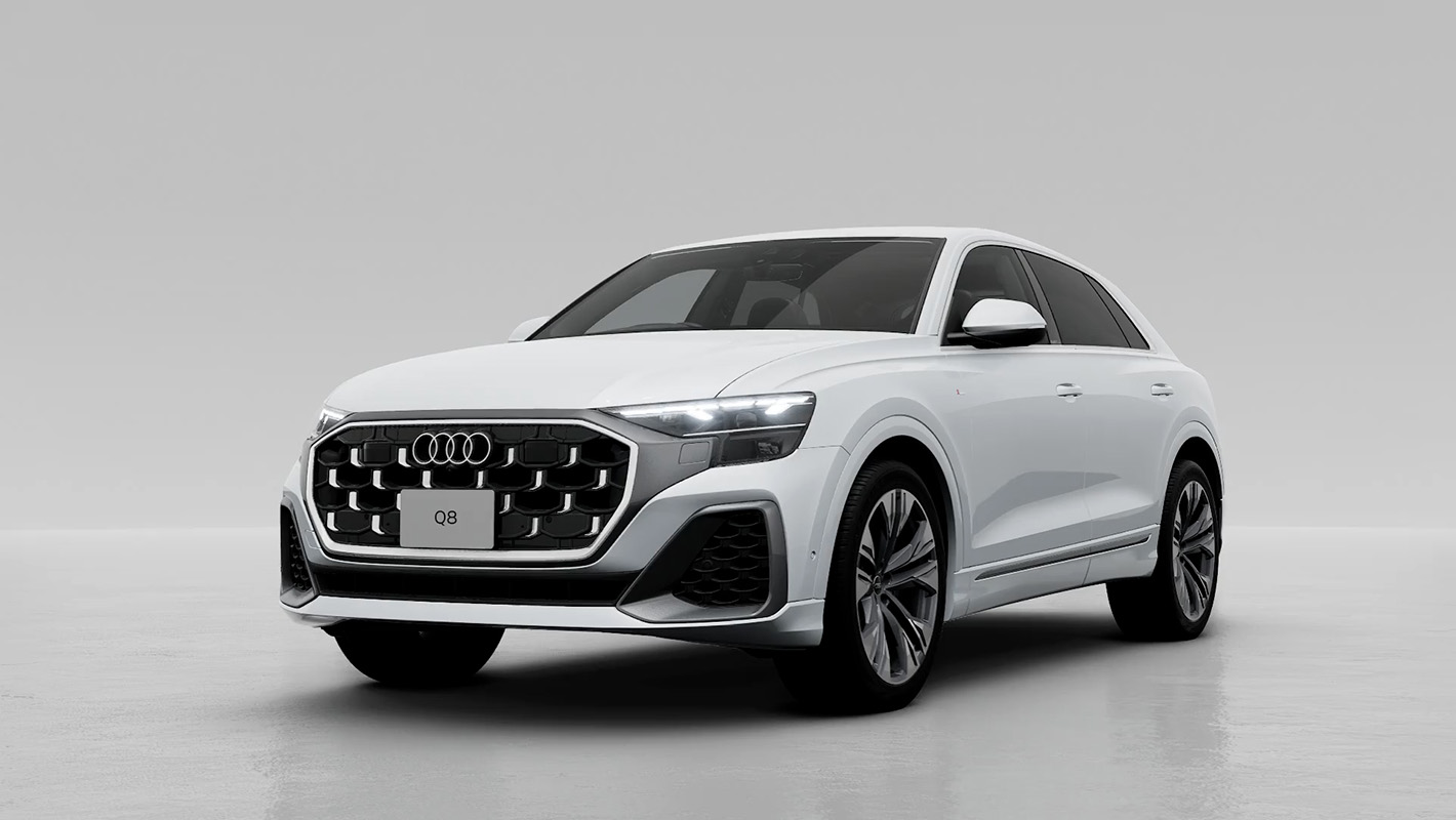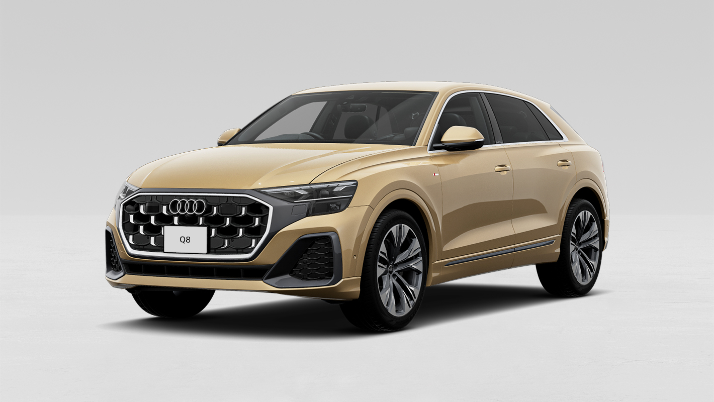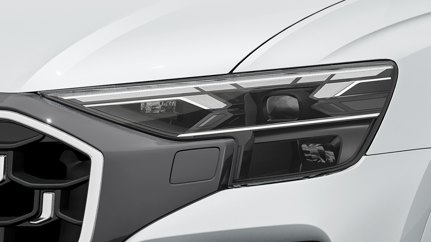 Audi Q8から、さらにスポーティな魅力をこの上なく引き出すS lineのエクステリア。グリルの周りをグレーで囲い込むことでよりワイド&ローのスタンスを強調。L字型の加飾を施したS line専用グリル。ボディ同色のS lineバンパーと大型のエアインレットが一体感を高め、スポーティネスとダイナミズムを併せ持つ印象的なフロントエンドを生み出します。