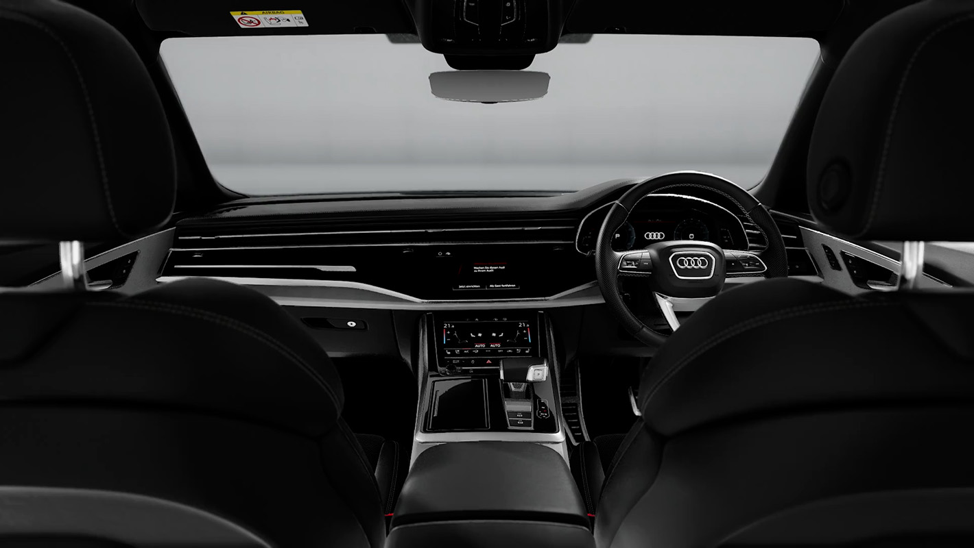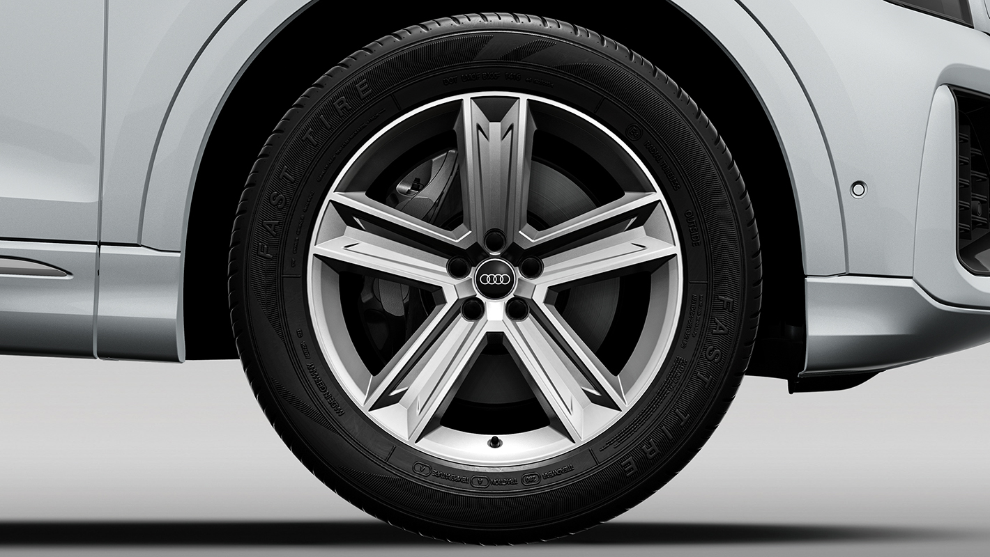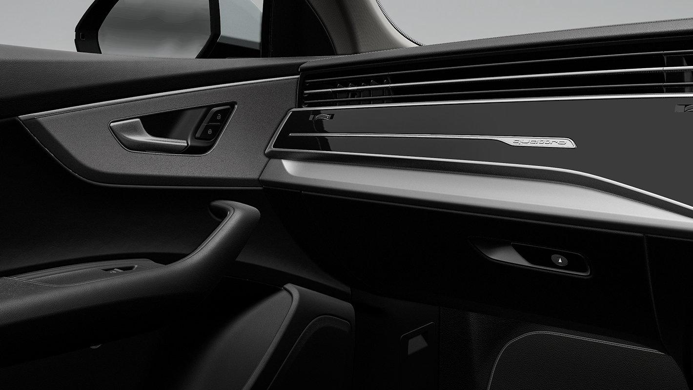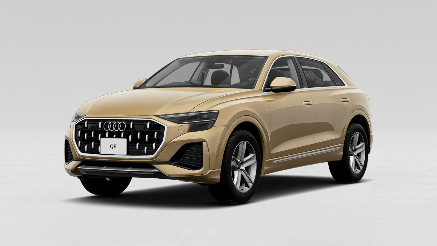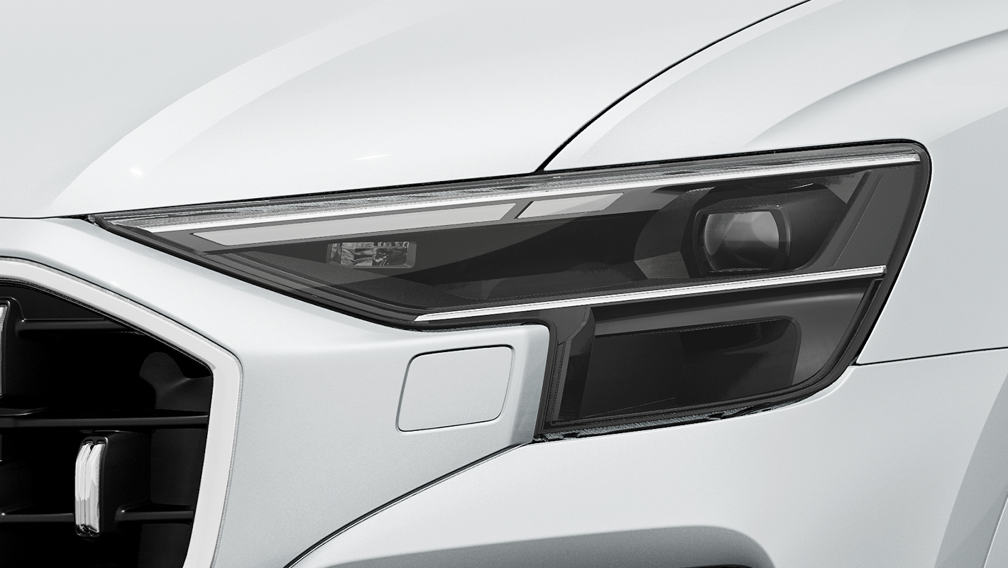 Audi Q8から、さらにスポーティな魅力をこの上なく引き出すS lineのエクステリア。グリルの周りをグレーで囲い込むことでよりワイド&ローのスタンスを強調。L字型の加飾を施したS line専用グリル。ボディ同色のS lineバンパーと大型のエアインレットが一体感を高め、スポーティネスとダイナミズムを併せ持つ印象的なフロントエンドを生み出します。